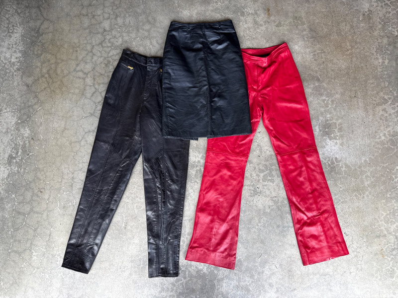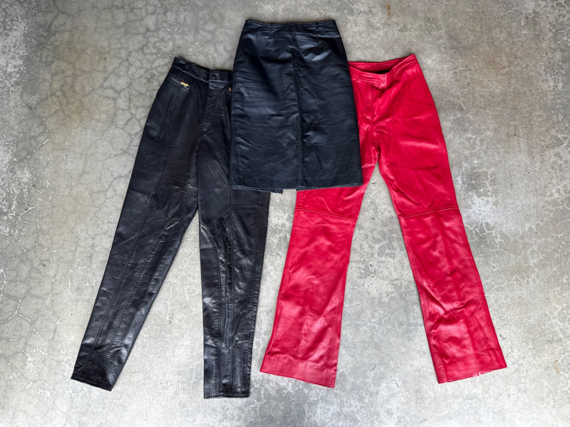 Vintage Leather Slacks (Sz 4) & Skirt Lot- (sz 6) PLEASE NOTE DIFFERENT PICKUP TIMES THAN TYPICAL FOR SOUND ESTATE AUCTIONS Pickups will be Wednesday, July 30th and Thursday, July 31st, Saturday, August 2nd from 4-6pm (firm by 6pm on Thursday) If you can not make these times, PLEASE ask for alternate available times or shipping. Shipping times will be up to 2 weeks after auction closes. Please call/text Jessica 253-350-0864 *All items will need to be collected by August 15