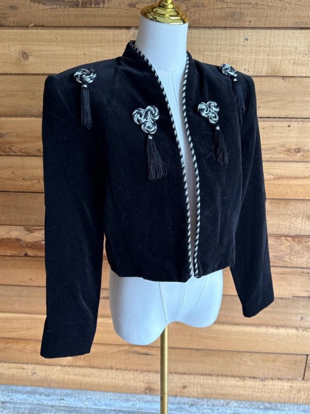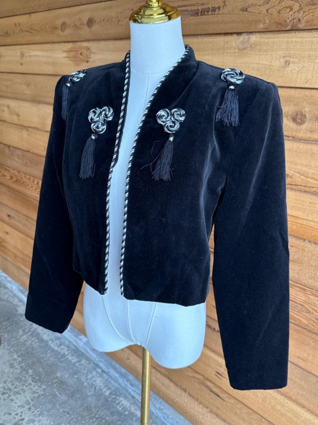 Vintage Jo Hardin Black Velvet Jacket w/ Silver Accents- Sz 6 PLEASE NOTE DIFFERENT PICKUP TIMES THAN TYPICAL FOR SOUND ESTATE AUCTIONS Pickups will be Wednesday, July 30th and Thursday, July 31st, Saturday, August 2nd from 4-6pm (firm by 6pm on Thursday) If you can not make these times, PLEASE ask for alternate available times or shipping. Shipping times will be up to 2 weeks after auction closes. Please call/text Jessica 253-350-0864 *All items will need to be collected by August 15