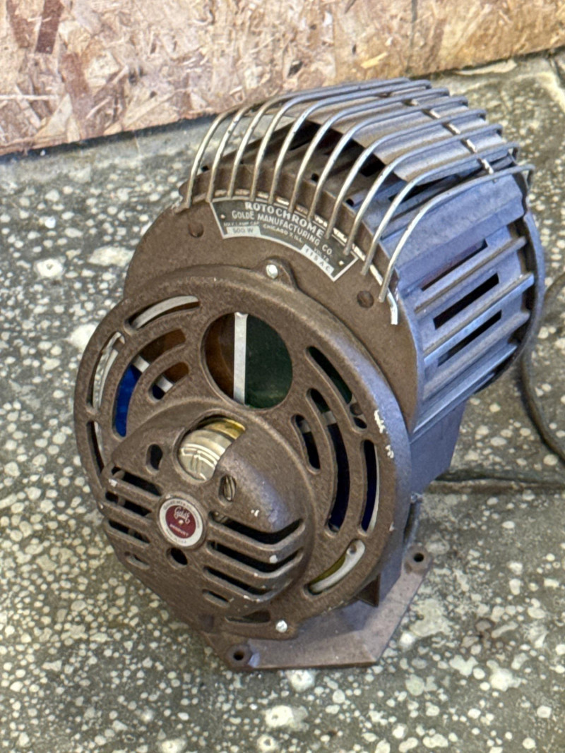 Vintage RotoChrome Colorwheel #2 Plugs in. As the wheel turns, the color changes. Pairs well with the aluminum Christmas Tree (Lot #5).