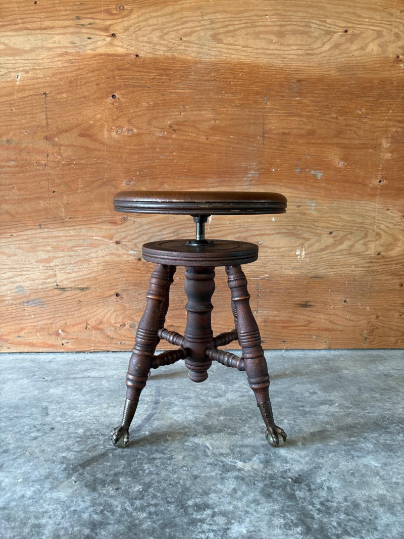 Lot # 89 - Antique Wooden Piano Stool with Glass Ball Feet