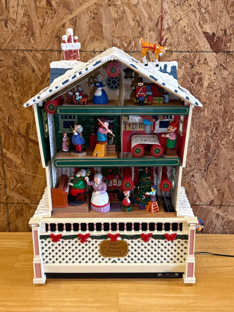 Vintage Santa’s Musical Workshop Music works. Lights and animations do not. Has original box.