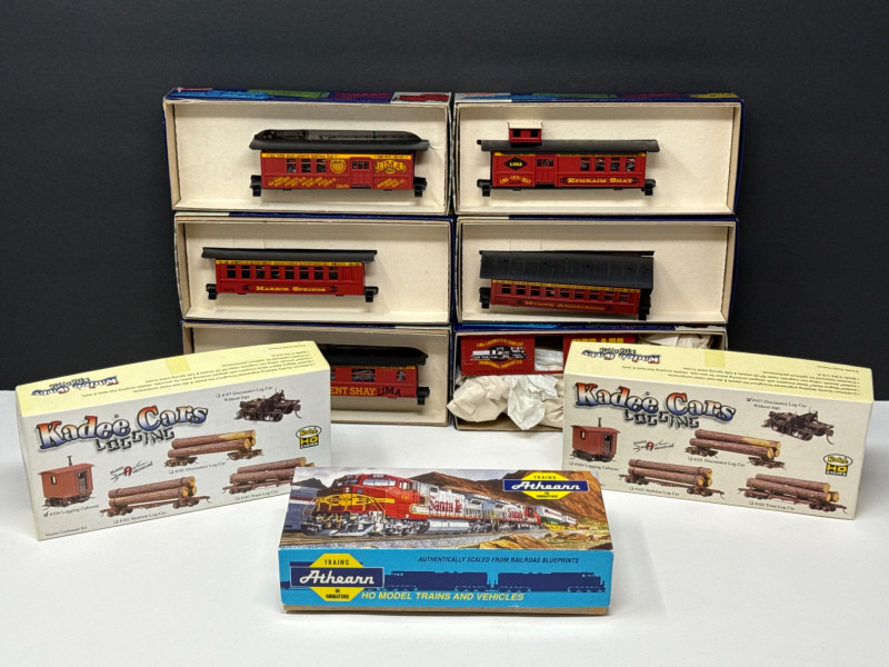 Various Athearn Model Train & Kadee Log Cars (2) Kadee Log Cars (6) Athearn Cars- All in original boxes, unassembled