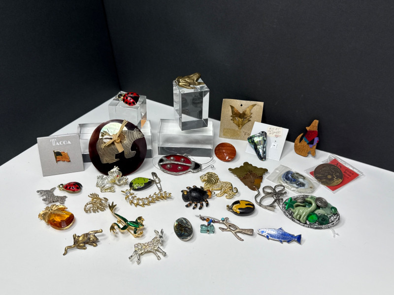 Lot # 122 - Assorted Pins, Pendants & Charms- Brass & More