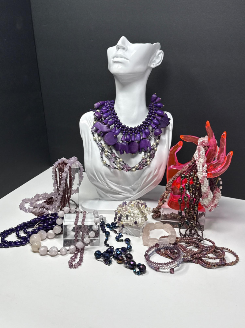 Vintage Purple Beaded Jewelry Assortment of Necklaces, Bracelets and Beads