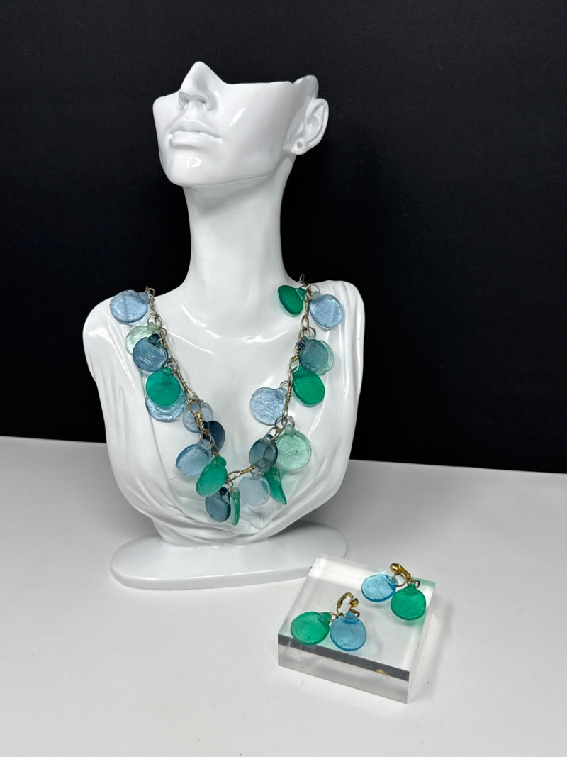 Vintage Blue & Green Sea Glass Necklace & Earrings