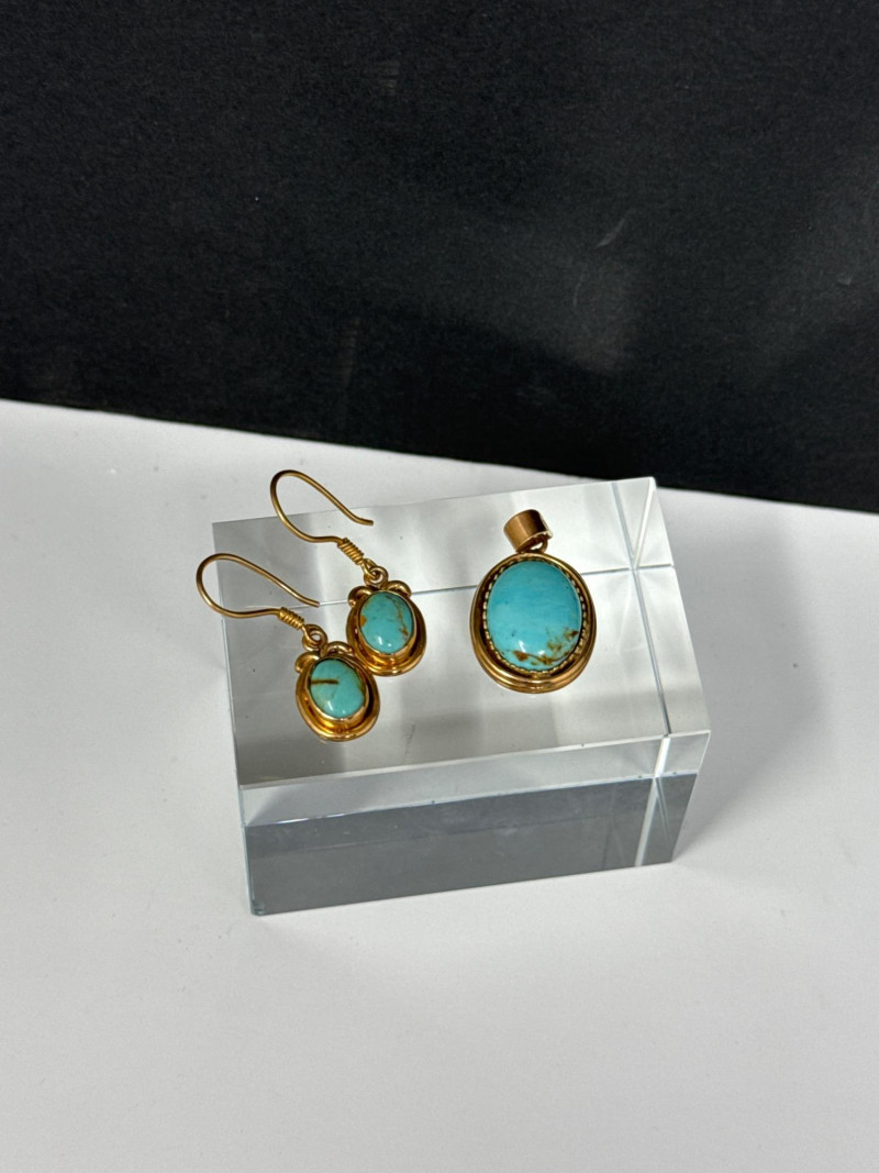 Lot # 87 - Turquoise & 18k Pendant w/ Earrings