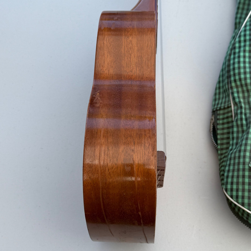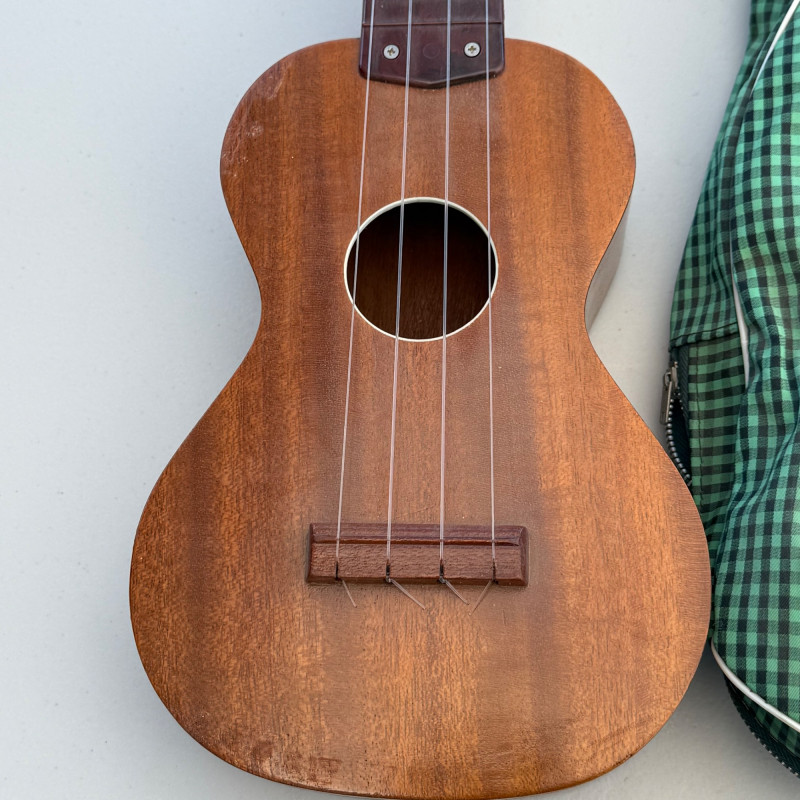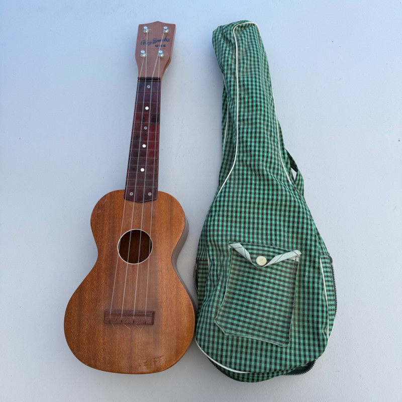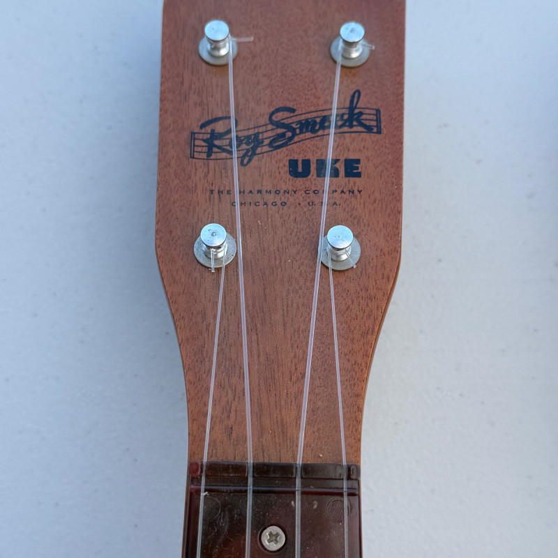 Vintage Roy Smeck Ukulele – Classic Harmony Craftsmanship! Step back into the golden age of American music with this vintage Roy Smeck ukulele, a charming and playable piece of mid-20th-century musical history. Named after the legendary “Wizard of the Strings,” Roy Smeck—renowned for his virtuosity on ukulele, banjo, and guitar—this instrument carries the legacy of one of the most influential performers of his time. Brand: Roy Smeck (often produced by Harmony or other U.S. makers under his endorsement) Era: Typically 1940s–1960s Size: Soprano Top/Body: Solid or laminate mahogany (varies by model) Fretboard: Rosewood or stained hardwood Frets: 12 frets, with position markers Bridge: Original vintage-style bridge Finish: Warm vintage brown or reddish mahogany stain, aged naturally over time This Roy Smeck ukulele delivers a warm, mellow tone that’s perfect for traditional Hawaiian, folk, or early American pop. Despite its age, this instrument often holds tuning well and offers surprising resonance for its size—ideal for both collectors and casual strummers. Details & Features: