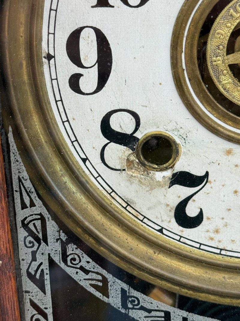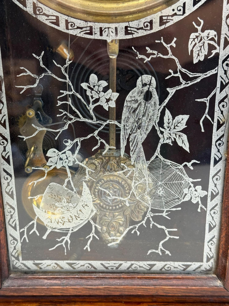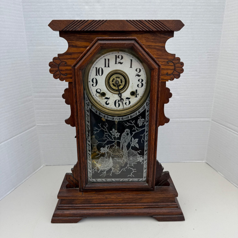 Antique Ansonia Mantel Clock – Timeless Elegance from a Legendary American Maker 🕰️ Add a touch of refined Victorian charm to your collection with this Antique Ansonia Mantel Clock, crafted by the famed Ansonia Clock Company of New York. Dating from the late 19th to early 20th century, this beautifully designed timepiece exemplifies the quality craftsmanship and decorative artistry that made Ansonia one of the most respected clockmakers of its era. Maker: Ansonia Clock Co., New York (est. 1851) Era: Circa 1880s–1910s Movement: 8-day mechanical movement with time and strike functions Chime: Bell or gong strike on the hour and half-hour (model dependent) Dial: Porcelain or paper dial with Roman numerals and ornate brass bezel Glass: Beveled or flat glass crystal over dial Material: Cast iron, spelter, marble, wood, or faux marble case (depending on model) Design: Classic Victorian, Art Nouveau, or Empire-style detailing—featuring columns, scrollwork, or decorative figures Works and has key. Clock Features: