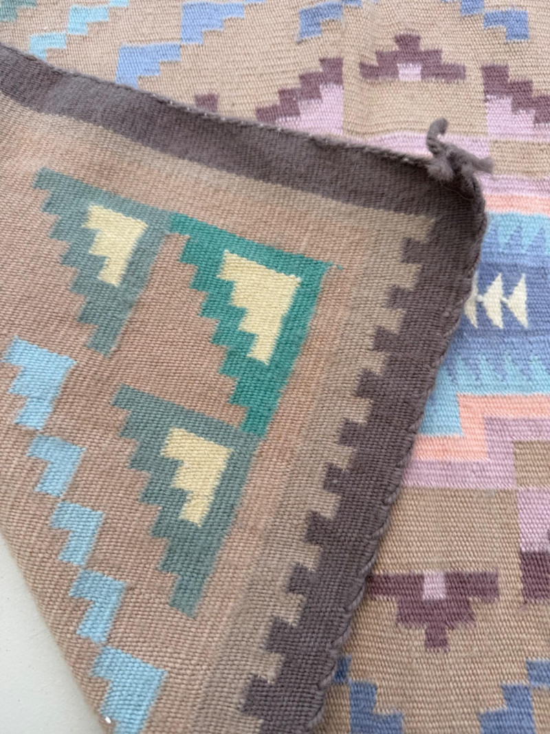 Roger Begay – Navajo Handwoven Rug (Small Size) This exquisite small Navajo rug is a finely crafted textile by Roger Begay, a respected Diné (Navajo) weaver known for his precision, traditional technique, and artistic interpretation of classic Navajo motifs. Every thread in this rug reflects the deep cultural heritage and spiritual artistry of Navajo weaving. Artist: Roger Begay (Navajo) Size: Small format (approx. [insert dimensions, e.g., 18" x 24"]) Material: Hand-spun wool, natural and aniline dyes Technique: Traditional upright loom weaving Origin: Navajo Nation, Southwestern U.S.