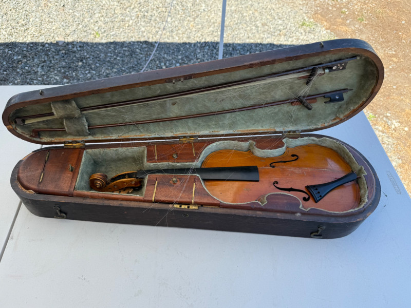Lot # 30 - Antique Violin in Wood case with 2 Bows