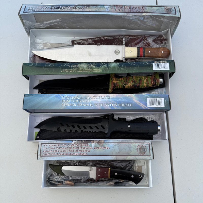 Chipaway and Frost Knives – New In Original Boxes Up for offer are brand-new knives from Chipaway and Frost, each securely housed in its original packaging, guaranteeing authenticity and unused condition. These knives are perfect for collectors, outdoor enthusiasts, or anyone seeking quality blades straight from the manufacturer. Condition: Factory new, unopened, in original boxes Brands: Chipaway – Known for reliable, durable knives with versatile designs suitable for everyday use and outdoor activities Frost Cutlery – Celebrated for rugged hunting and survival knives featuring strong blades and ergonomic handles Blade Material: Typically high-quality stainless steel (model dependent) Handle Material: Varies — often hardwood, synthetic, or textured grips for secure handling Packaging: Original labeled boxes with protective inserts, perfect for collectors