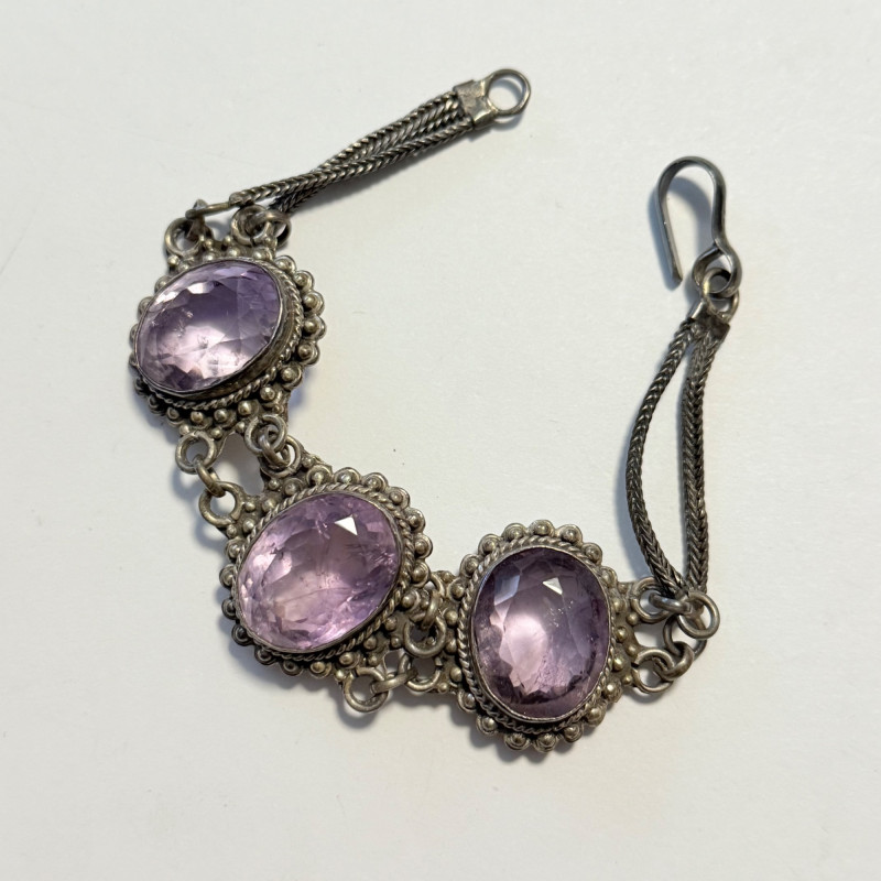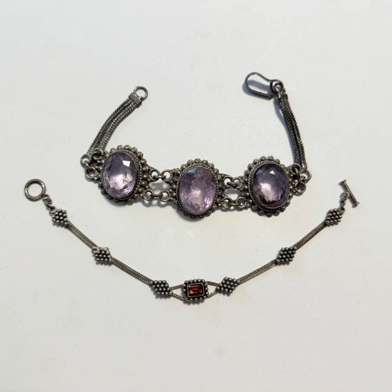 Bracelets measure 7-8 inches long. Amethyst stones are 3/4 x almost an inch