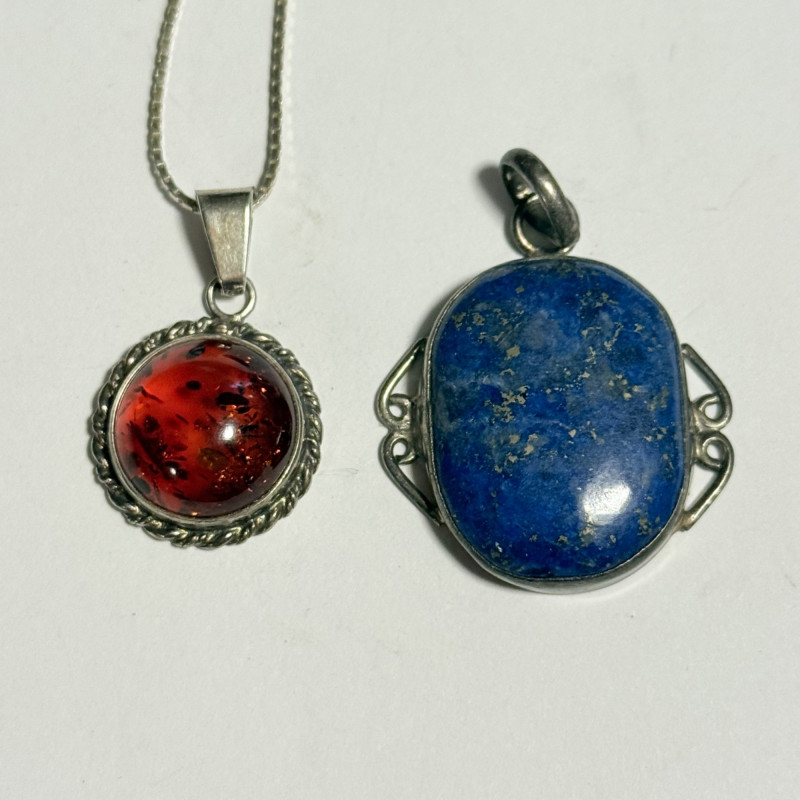 Lot # 65 - Amber and Lapis Pendants