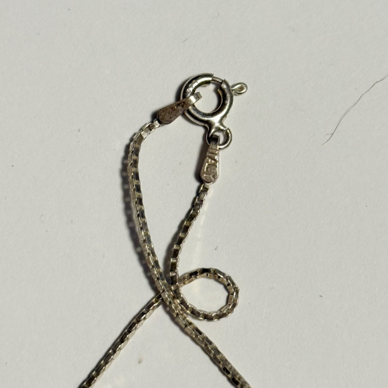 Measures 3/4-1.25 inches. Chain is 17 inches long