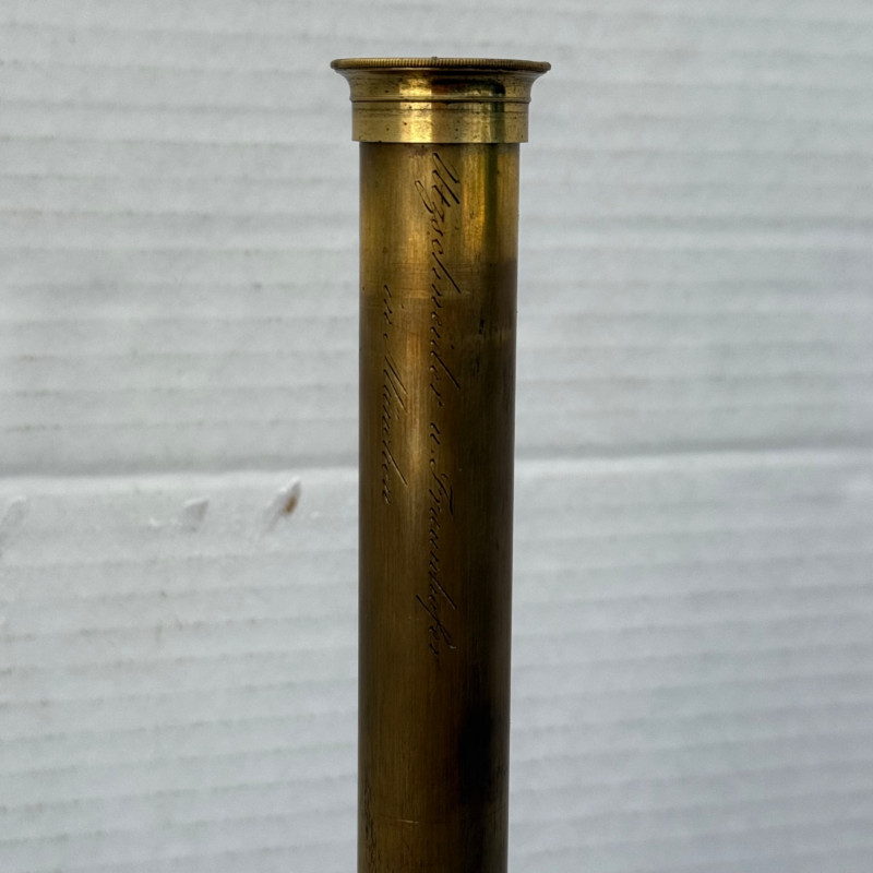 Antique Utzschneider Spyglass – 19th-Century Precision Optics with Classic Craftsmanship A rare and distinguished find, this Antique Utzschneider Spyglass reflects the fine craftsmanship and scientific ingenuity of 19th-century European optics. Manufactured by Utzschneider & Cie, a respected name in precision instruments based in France and Germany, this handheld telescope offers both historical value and timeless mechanical beauty. Maker: Utzschneider & Cie (often associated with Maison Utzschneider or Utzschneider & Fraunhofer) Era: Mid to late 1800s Material: Brass construction Design: Extendable tube with multiple draw sections; manual focus via sliding assembly Engraving: Typically marked “Utzschneider” or “Utzschneider & Cie” on draw tube or body Utzschneider spyglasses were used by travelers, naval officers, and naturalists throughout the 19th century. Their design reflects a transitional period in optical development, blending portability with high-grade lens quality—often influenced by the innovations of optical pioneer Joseph von Fraunhofer. This piece not only functions as a fascinating historical artifact but also as a beautifully crafted decorative item for libraries, offices, or display cabinets. Key Features: