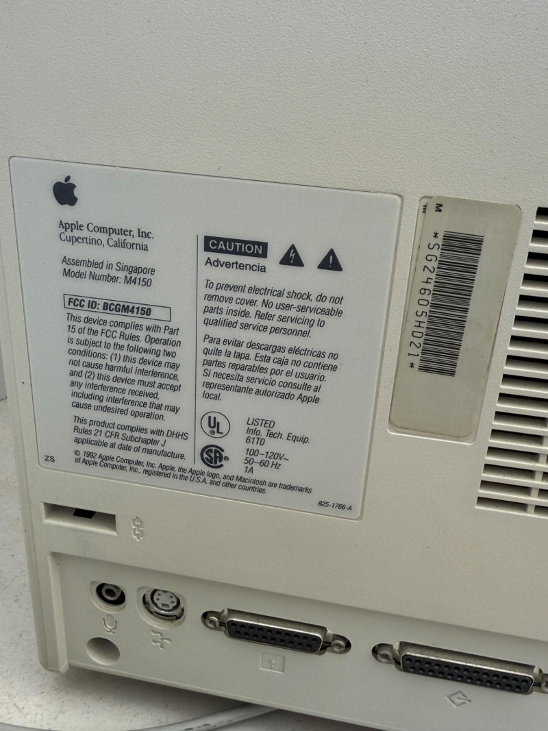 Vintage Apple Computer – Model M4150 Step into the early days of Apple’s PowerPC era with this Vintage Apple Computer Model M4150, also known as the Power Macintosh 7200/90. Released in the mid-1990s, this model marked a transition into faster, more capable computing—featuring the first generation of Apple’s PowerPC processors. Its all-in-one desktop design and sturdy beige case make it a nostalgic icon for vintage tech enthusiasts.