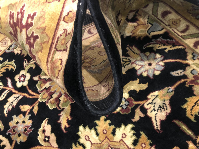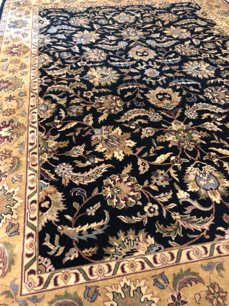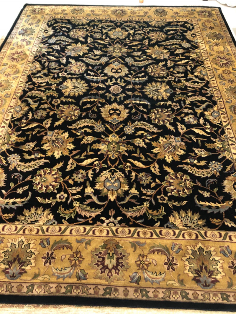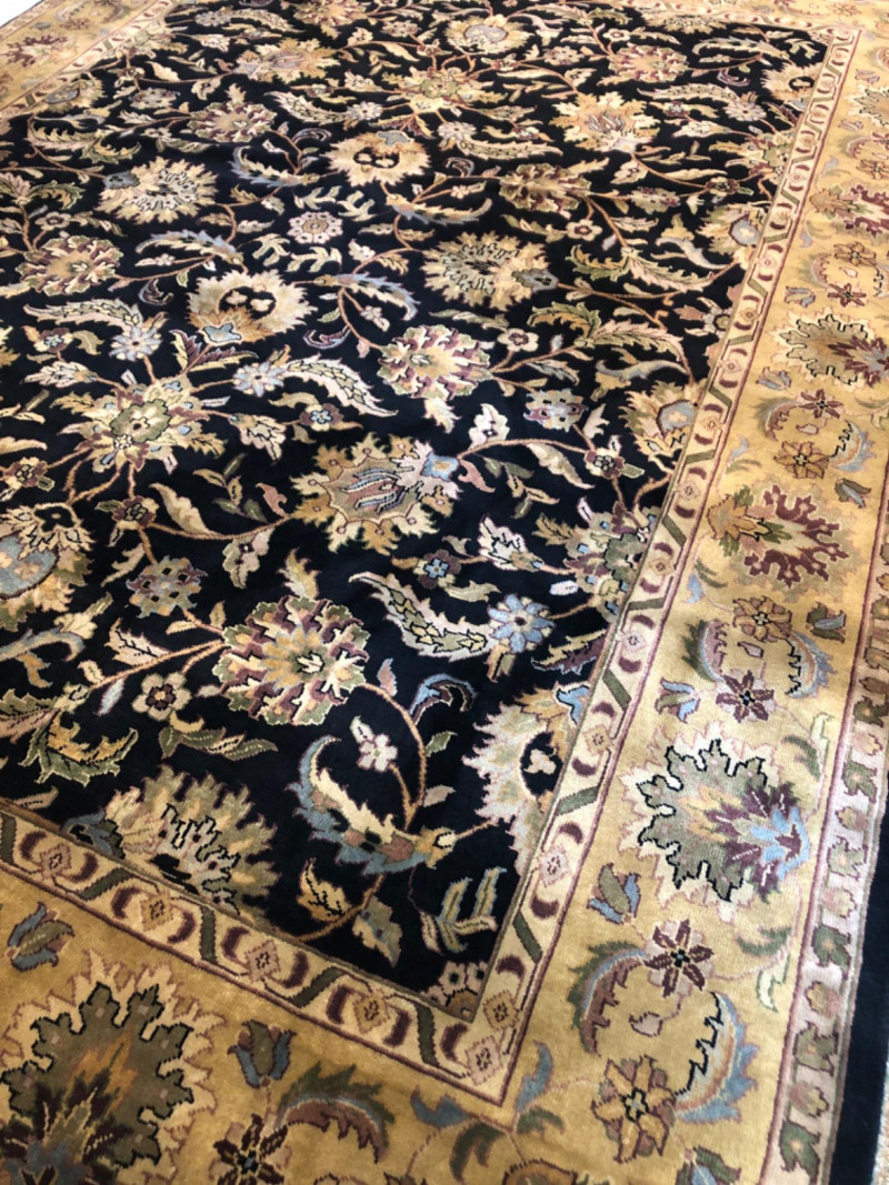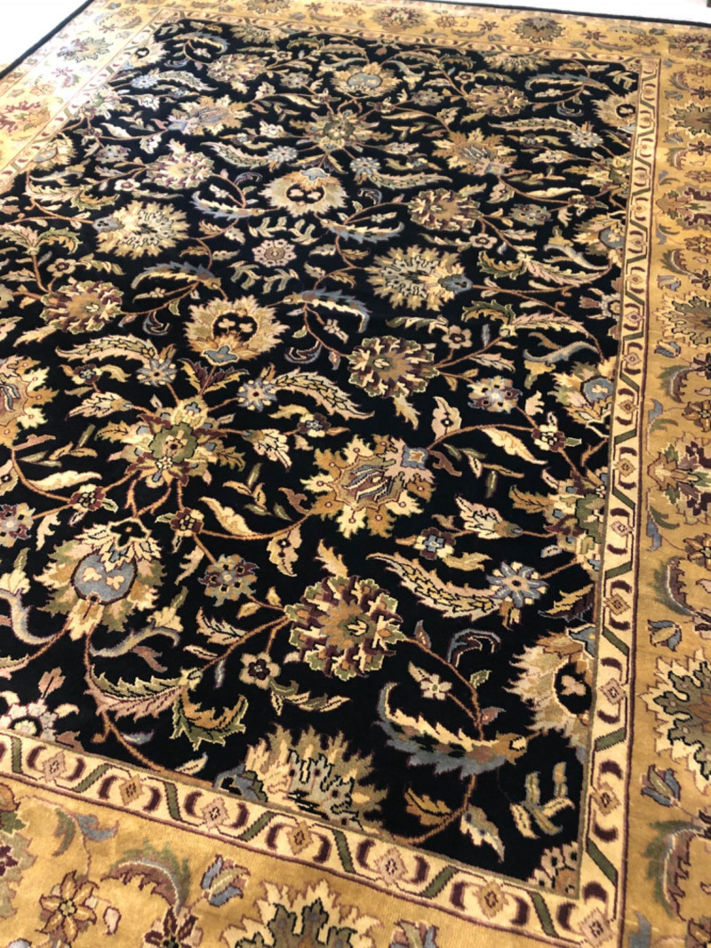 Lot # 1 - Large Handmade Wool Rug – Black & Gold Floral, India