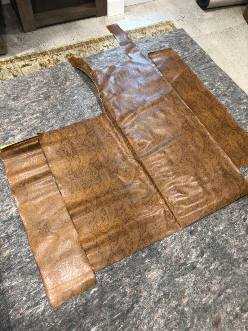 Vintage-style polyurethane fabric remnants with tooled floral paisley pattern in a western-style design. Set includes approximately 2 square yards across four irregular pieces. Textured surface with a golden brown finish and soft backing. Great for DIY projects, upholstery accents, or craft use.