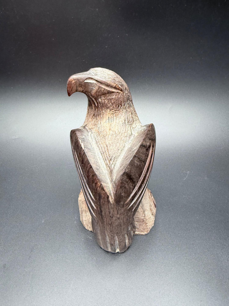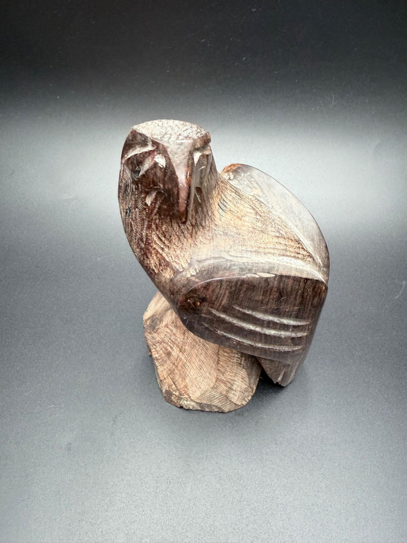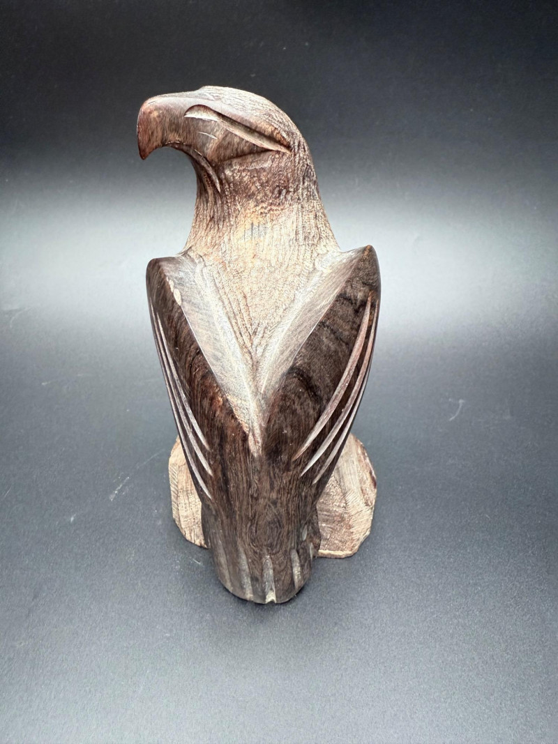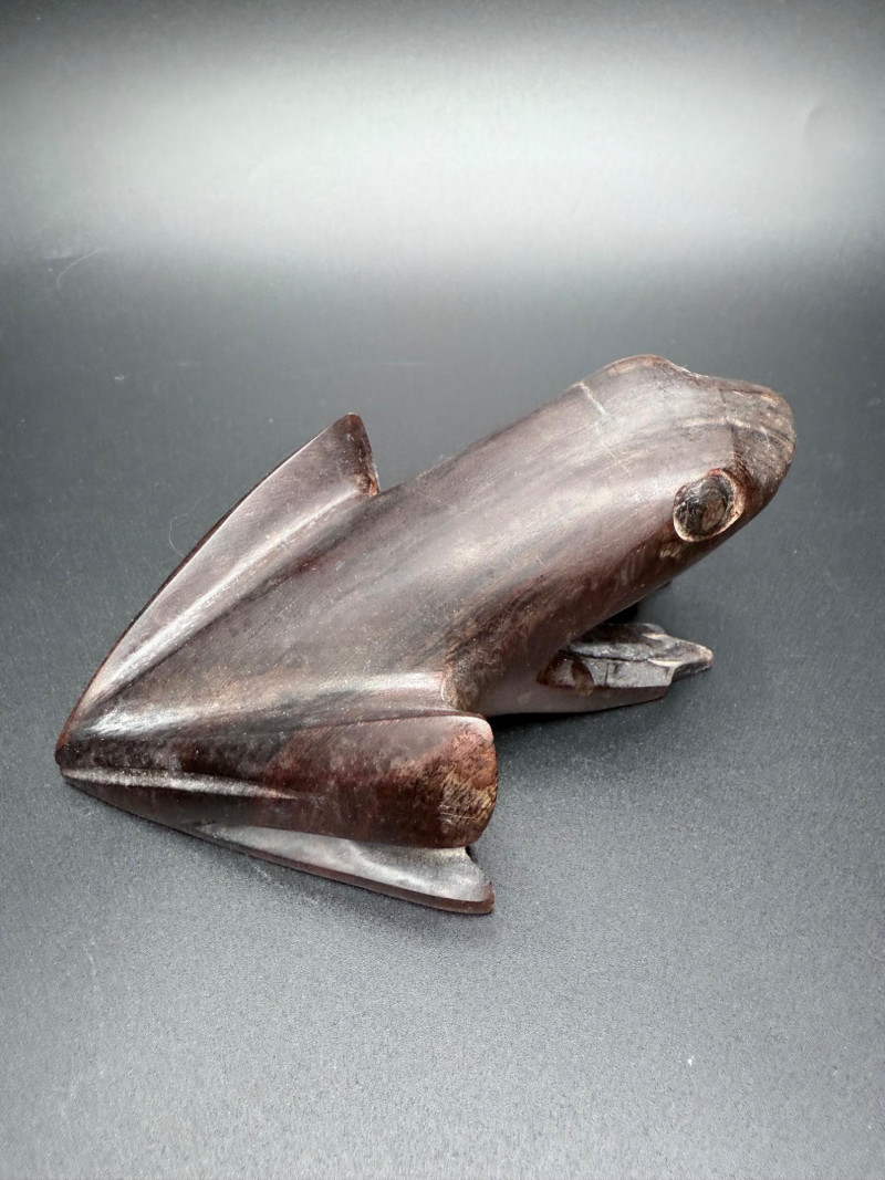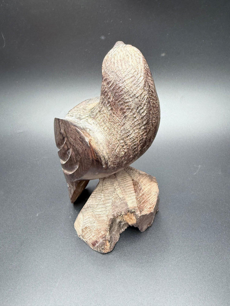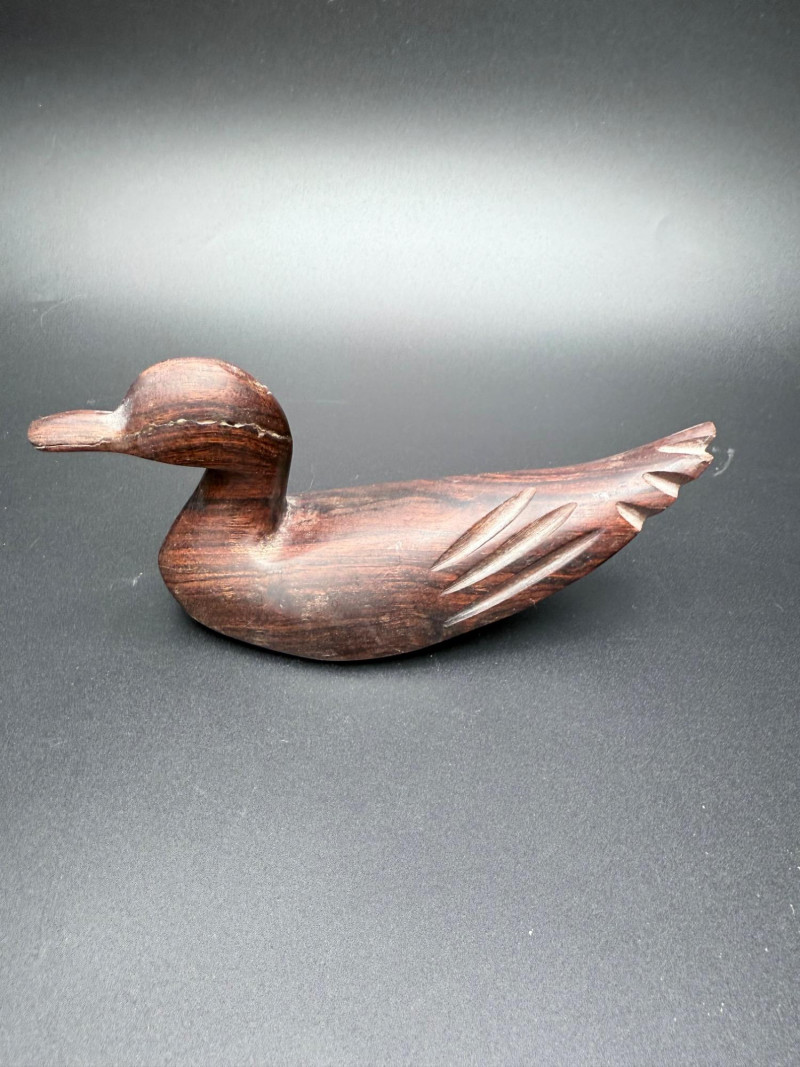 Stained Glass Parrot Lamp and Hand-Carved Wooden Animal Figures A group of decorative objects composed of a stained glass parrot lamp and five carved wooden animals. The parrot lamp features a glass mosaic shade in the form of a bird perched on a tree branch. It is equipped with a wired socket and switch. The design is likely Tiffany-style. The wooden figures include a carved alligator, a bird of prey, a duck, and a frog. The duck is likely made of ironwood, while the others are shaped from solid hardwood. Each figure is rendered with distinct forms and postures. Set includes: Stained glass parrot lamp – 13" tall x 5" base diameter, likely Tiffany-style Carved alligator – 13" long Carved hawk – 6.5" tall x 3" wide Carved duck – 6" long, likely ironwood Carved frog – 5.5" wide Note: Parrot lamp light is in working condition.