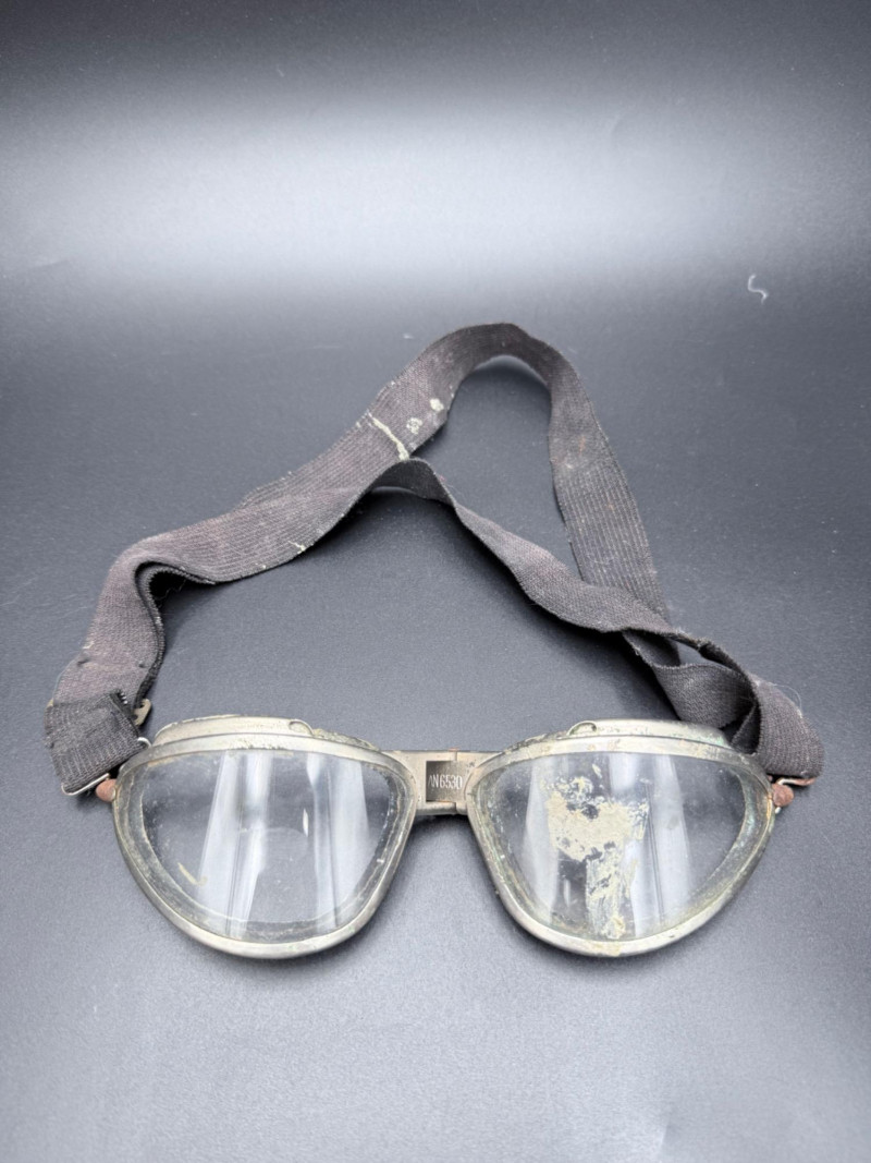 Metal frame with clear lenses and adjustable black fabric strap. Marked “N6530” on the bridge.