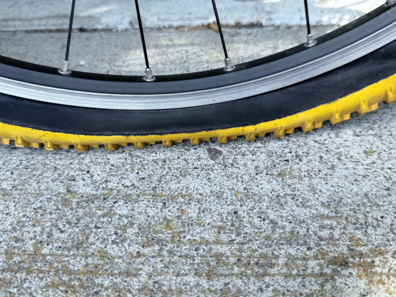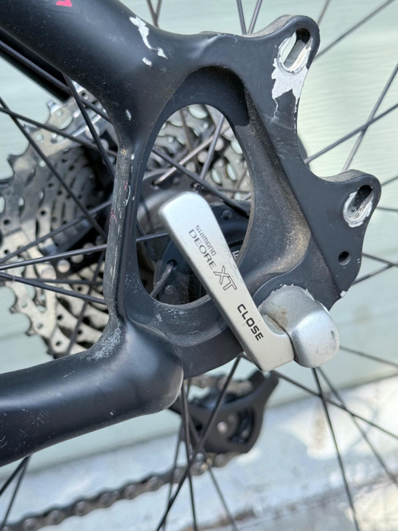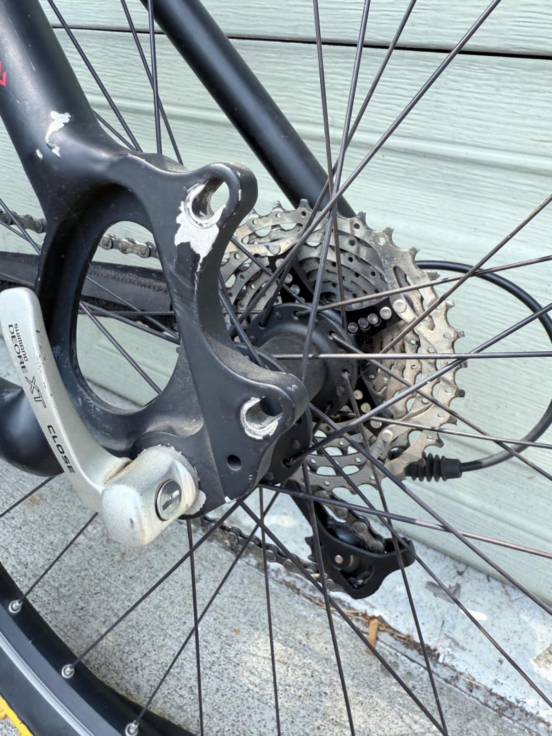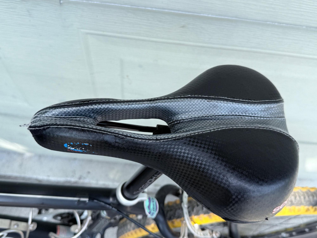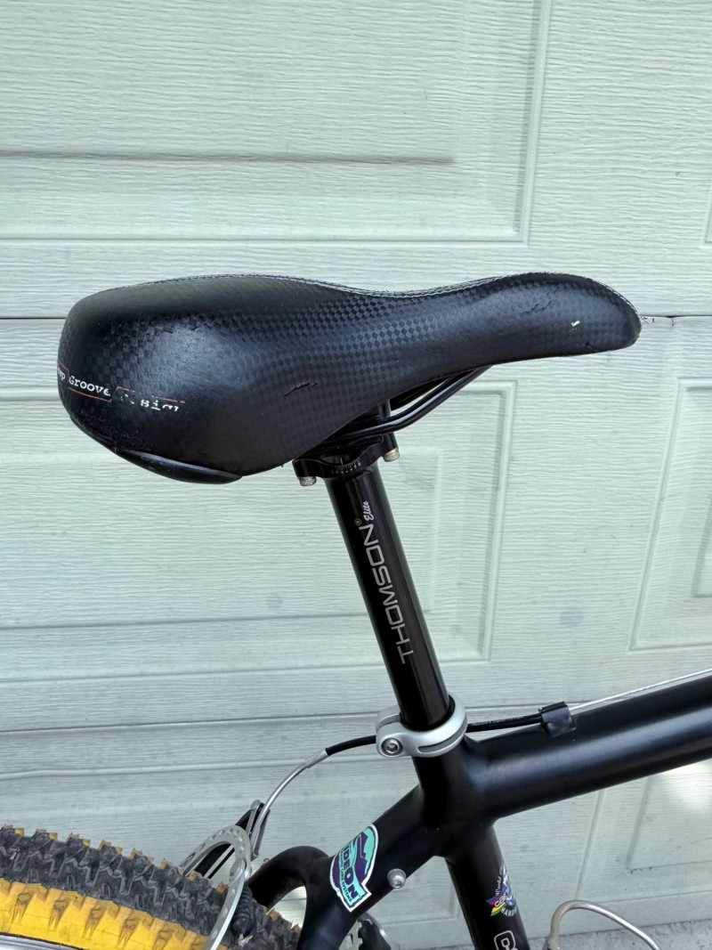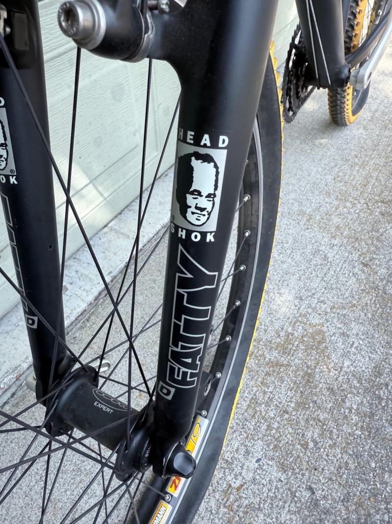 Cannondale F900 CAAD3 Mountain Bike – 26" This mountain bike features a Cannondale CAAD3 frame with a black matte finish, marked “F900” and “DISC-SPECIFIC.” It is fitted with CODA USA and CODA Expert components, including crank and handlebar parts. The drivetrain is equipped with a Shimano Deore XT rear derailleur, GripShift twist shifters, and a multi-speed cassette. The bike includes a HeadShok Fatty front suspension fork and Arch Rival 50 brakes. The wheels are mounted with French-made tires marked "Premium Quality" with yellow tread. Additional features include a Thomson seat post, ergonomic saddle with center channel, alloy pedals with toe cages, and a water bottle cage. Note: Tires show visible wear and the bike is untested.