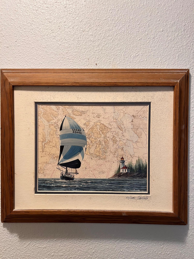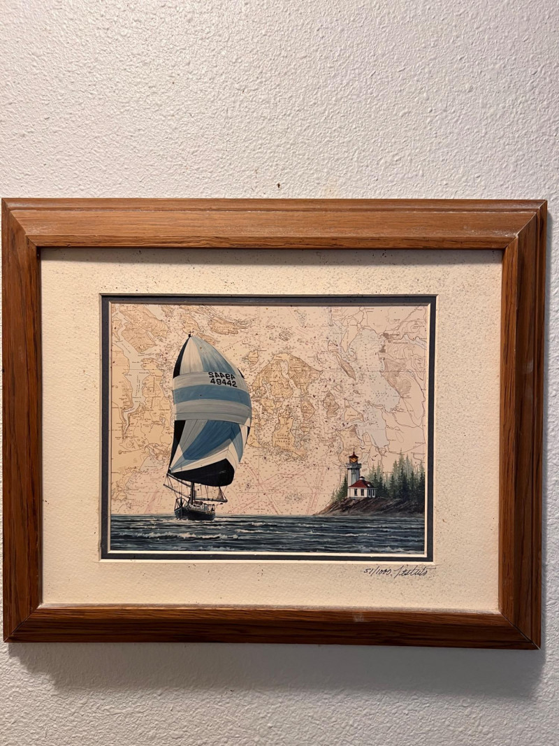 Lot # 66 - Sailboat and Lighthouse Nautical Chart Print – Signed and Numbered