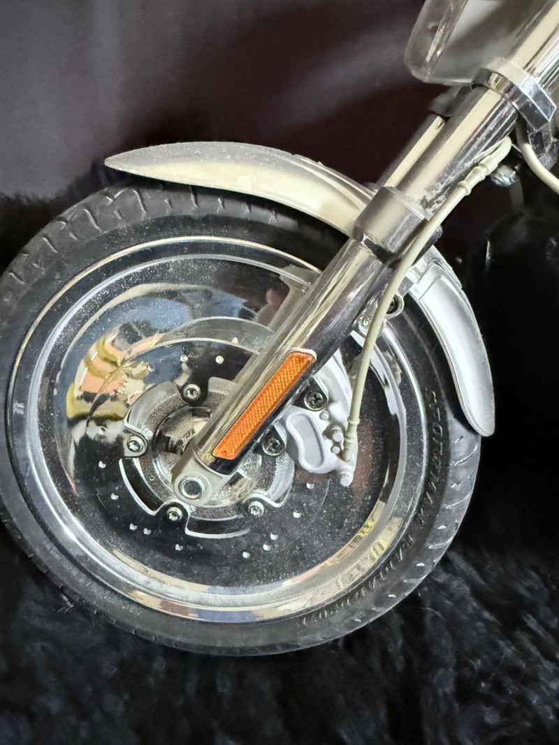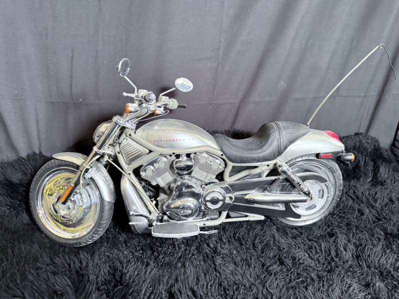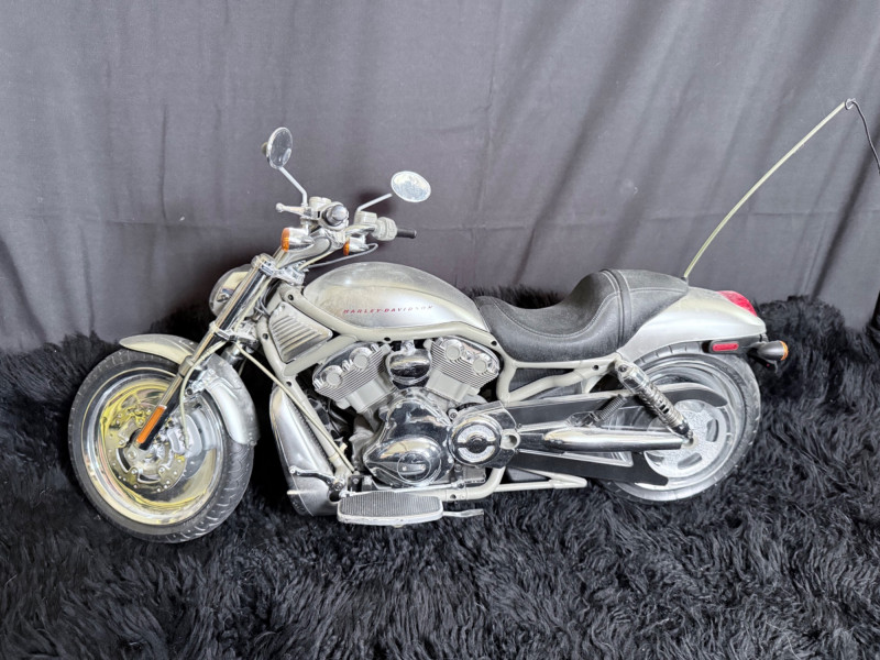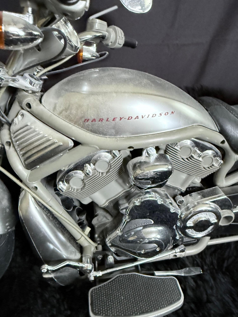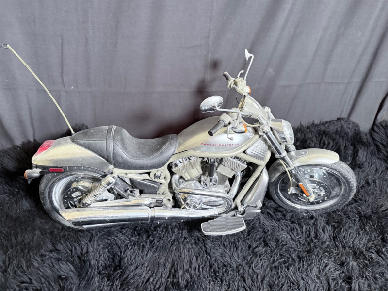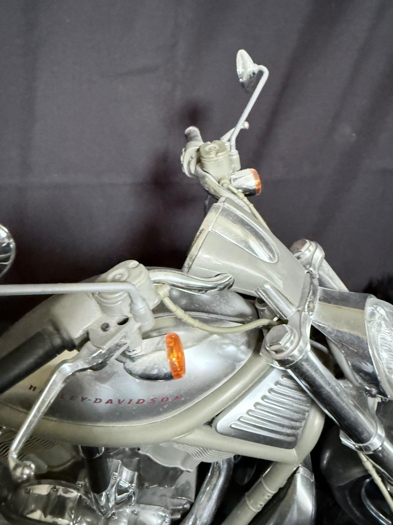Harley-Davidson Motorcycle and Die-Cast Truck Set A pair of Harley-Davidson collectibles, including a large display motorcycle and a 1:18 scale die-cast 2001 Ford F-150 Super Crew Pickup truck. The motorcycle features chrome engine components, dual exhaust, rubber tires, and antenna. The truck is part of the American Muscle Body Shop series by Ertl Collectibles and remains in its original packaging. Note: Motorcycle is not remote-controlled. Not tested. May not function. Motorcycle Dimensions: Truck Packaging Dimensions (Boxed): Set Includes: