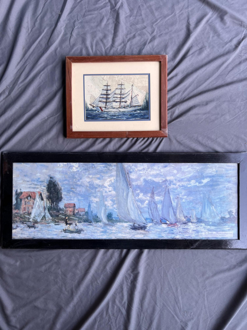 Lot # 91 - Claude Monet Regatta & Vestufo Tall Ship – Framed Prints (2 Pieces)