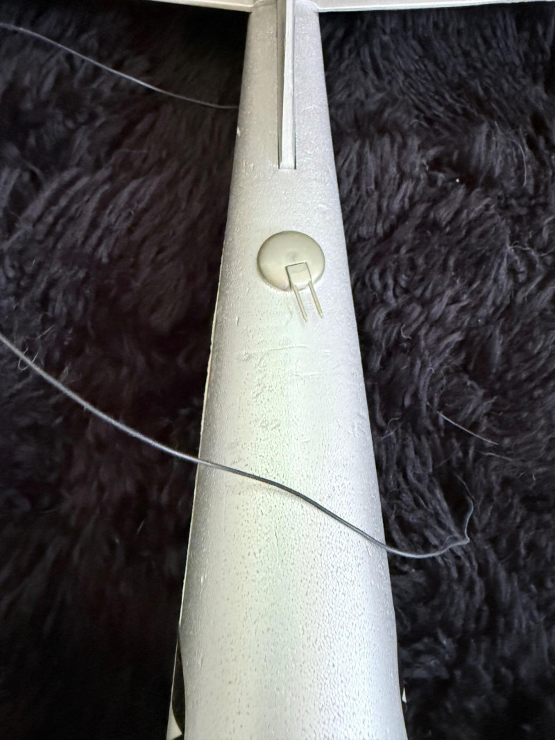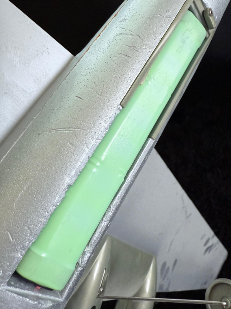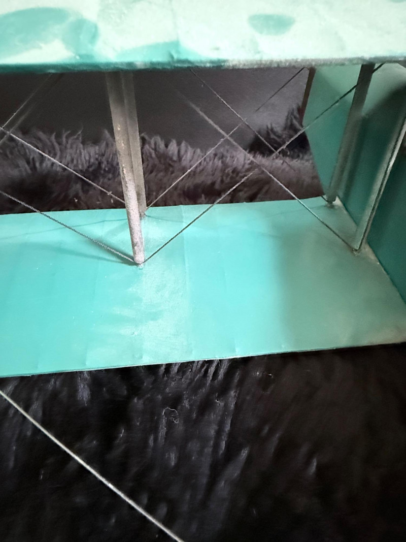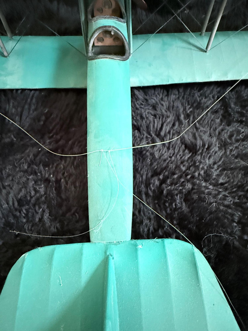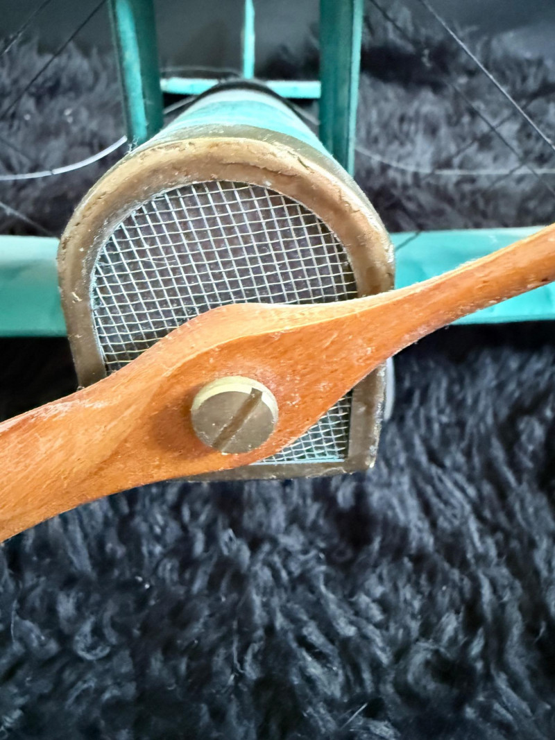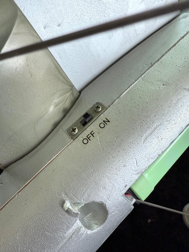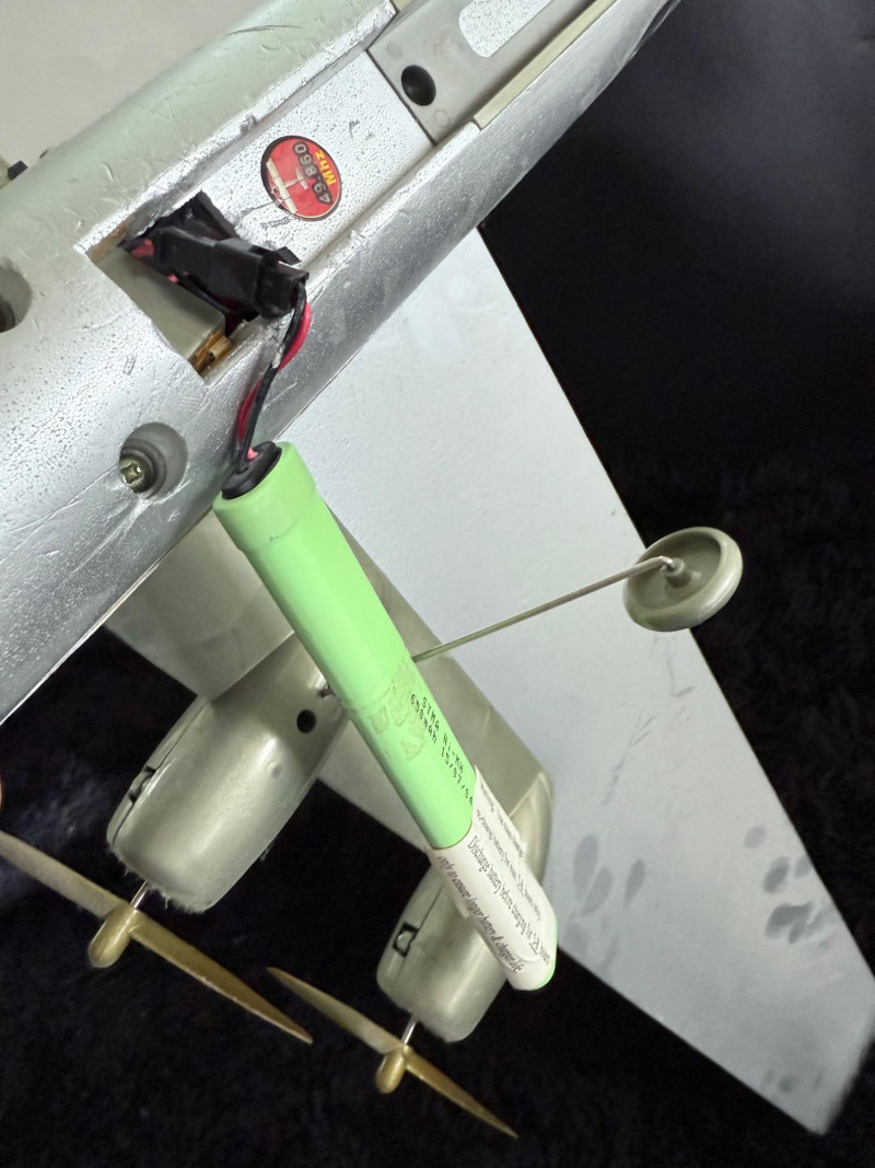 Bomber and Curtiss JN-4 “Jenny” Biplane Model Aircrafts A pair of handcrafted model aircrafts featuring a large four-engine bomber and a Curtiss JN-4 “Jenny” biplane. The bomber has a styrofoam body with plastic propellers, battery housing, and printed military markings including a star insignia and bold wing text. The biplane has a wooden fuselage with paper-covered wings, wire rigging, dual open cockpits, a wooden propeller, fixed wheels, and tail number 39334. A fleur-de-lis emblem is painted on both sides of the fuselage. Dimensions: