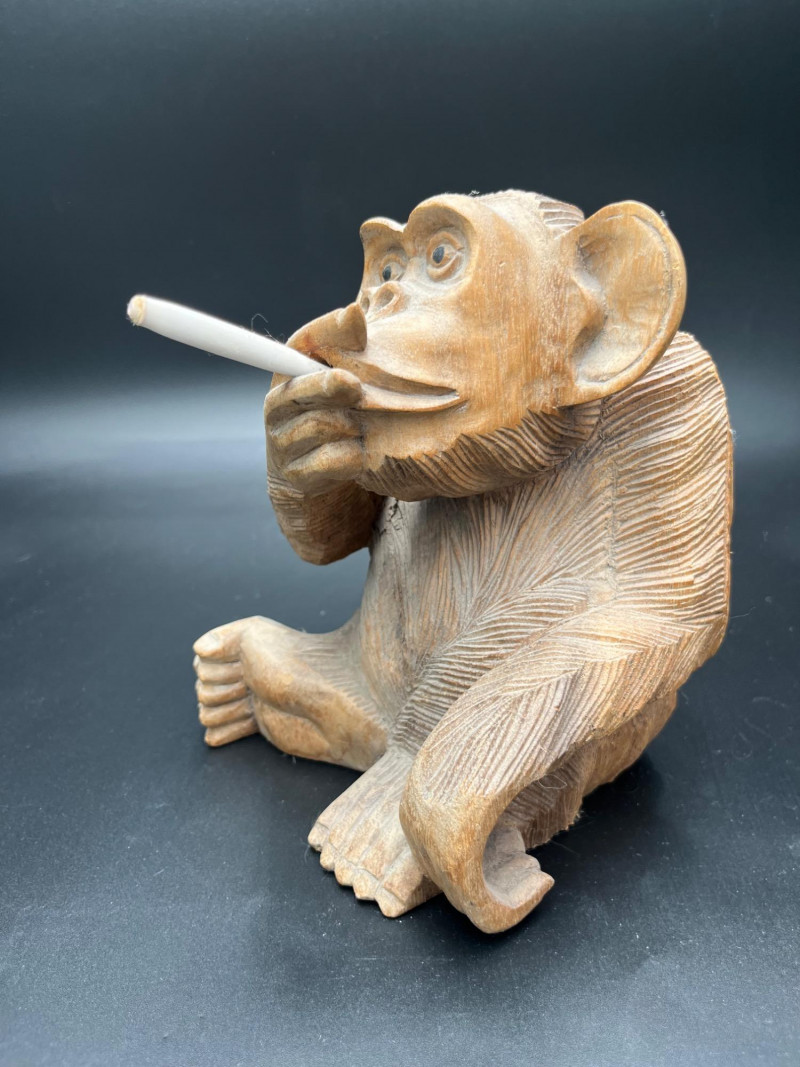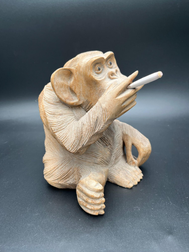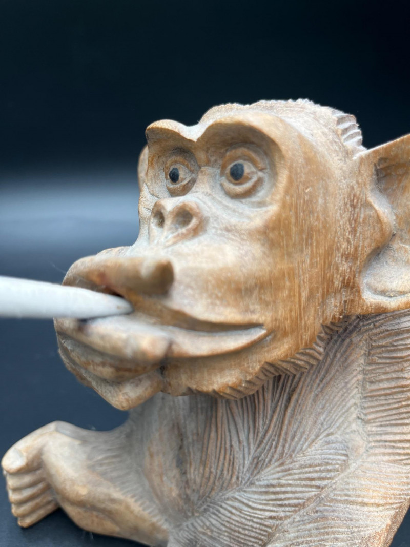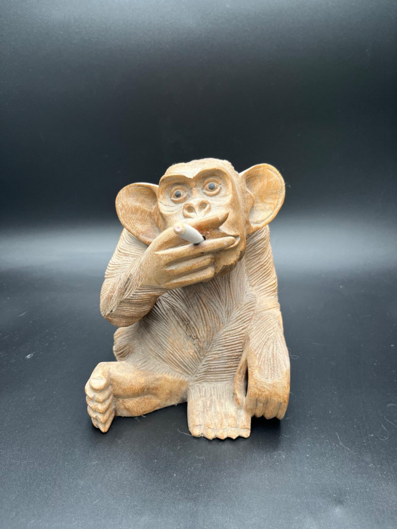 Lot # 114 - Carved Wood Chimpanzee Holding Cigarette