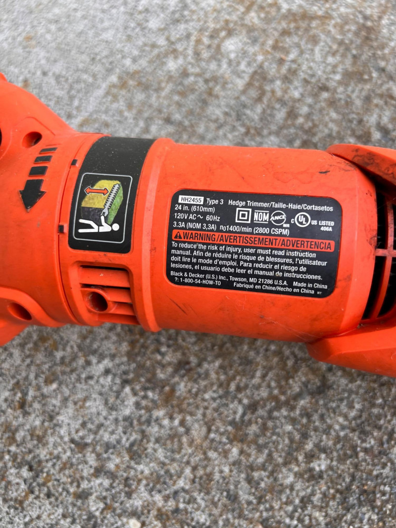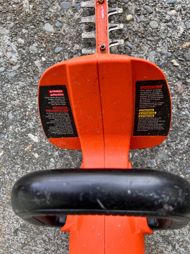 Electric trimmer with 24" dual-action blade, front D-handle, and rear trigger grip. Model HT2200.