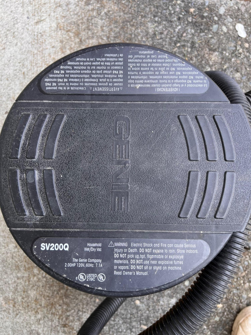 6-gallon vacuum (model SV200Q) with 2.5 peak HP motor, hose, and nozzle.