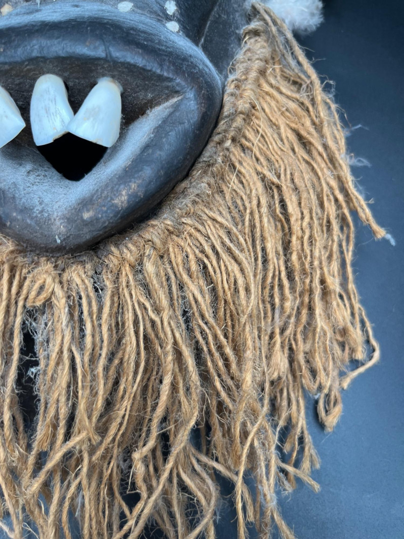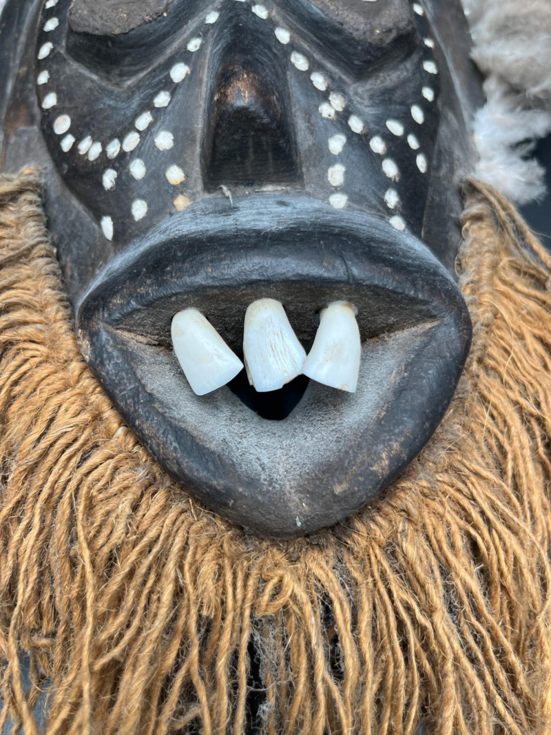 Lot # 128 - African Tribal Mask with Cowrie Shell Eyes and Raffia Beard