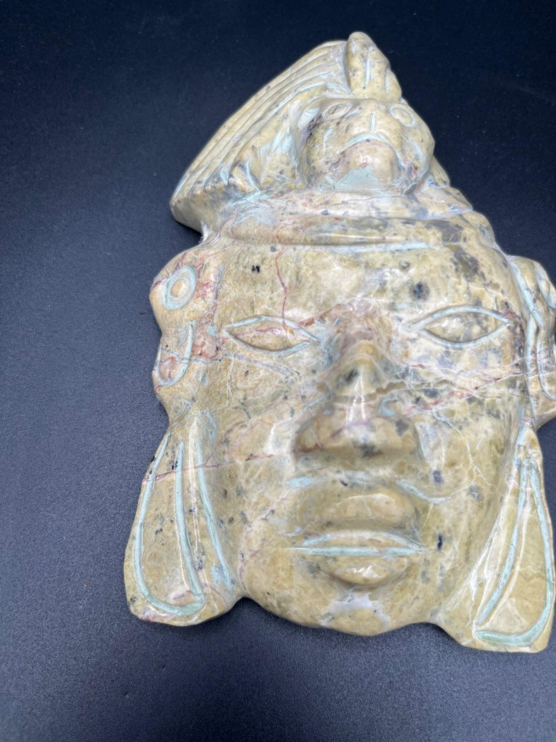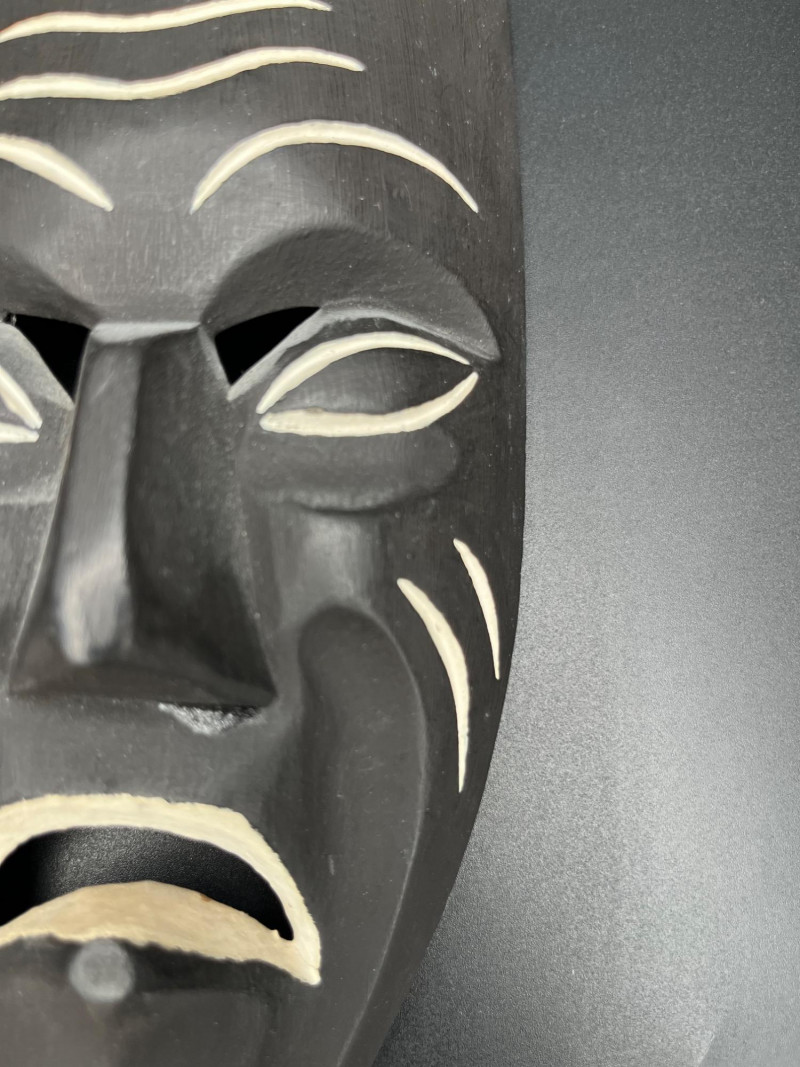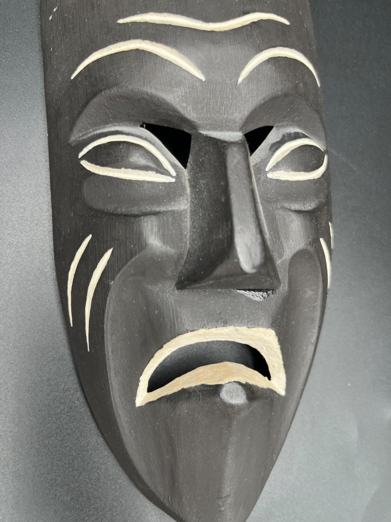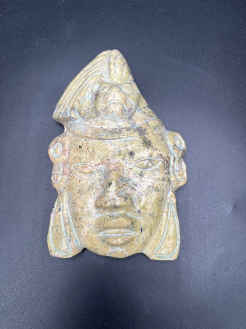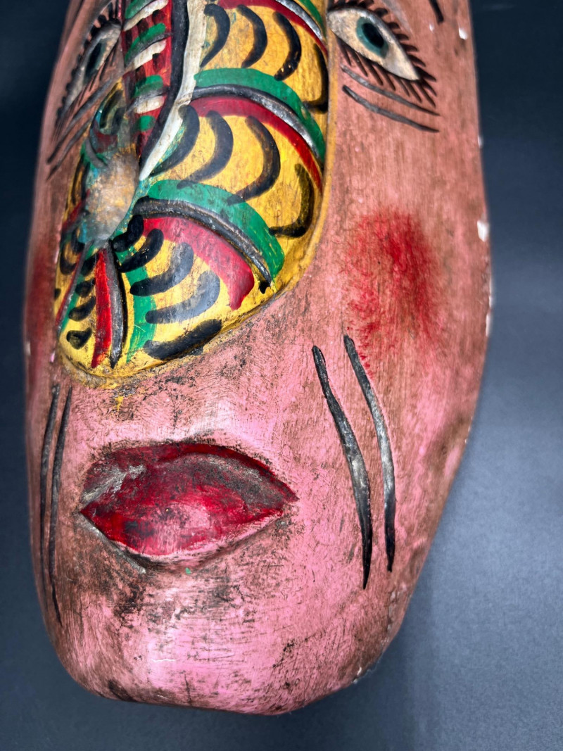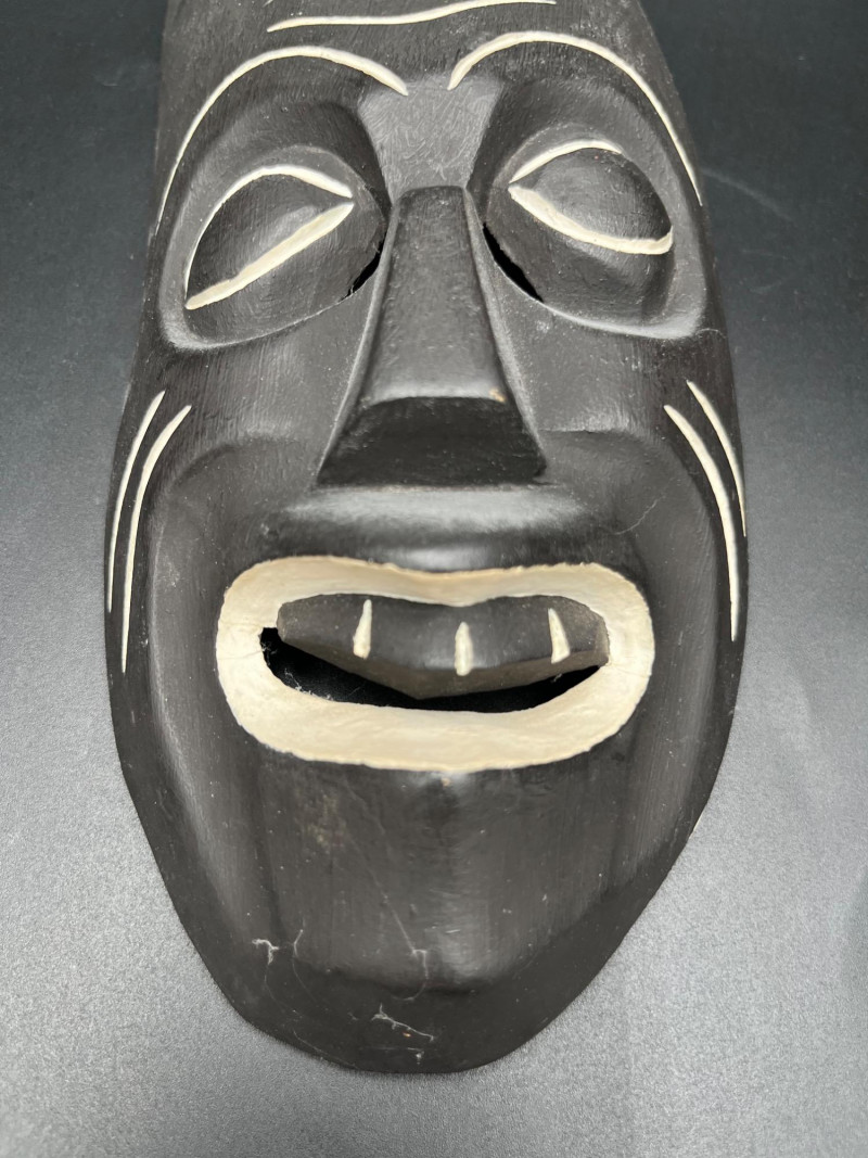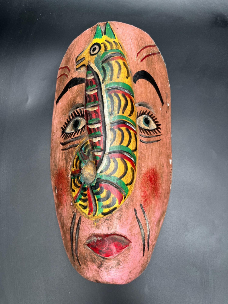 Lot of 4 Handcrafted Ethnic Masks – Carved Wood & Clay, Tribal & Folk Art Description: Features: Lot includes 4 individual masks in mixed materials: wood and clay/ceramic Size range approximately 5.5" to 11.5" tall, 3.75" to 6.5" wide (see photos for scale) Two carved black wood masks with bold white accent lines and dramatic expressions, evoking traditional tribal themes One large painted folk-art mask featuring vibrant colors, stylized facial details, and an eye-catching lizard motif in relief One small sculpted clay or ceramic piece with Mesoamerican-style facial features, possibly inspired by Mayan or Aztec art Highlights: Handcrafted, each piece has unique character and artisanal detail Rich cultural variety—perfect for an eclectic, global aesthetic Great conversation starters for home, office, or gallery walls Ideal for collectors of world art, folk art, and ethnographic décor