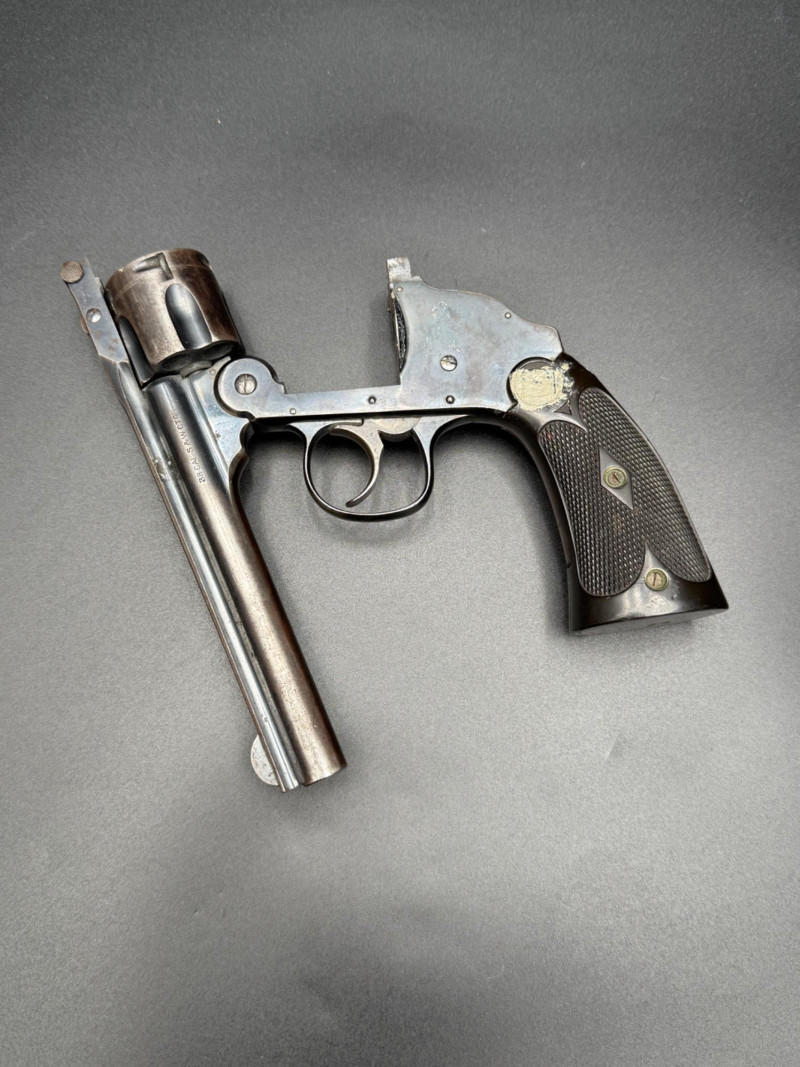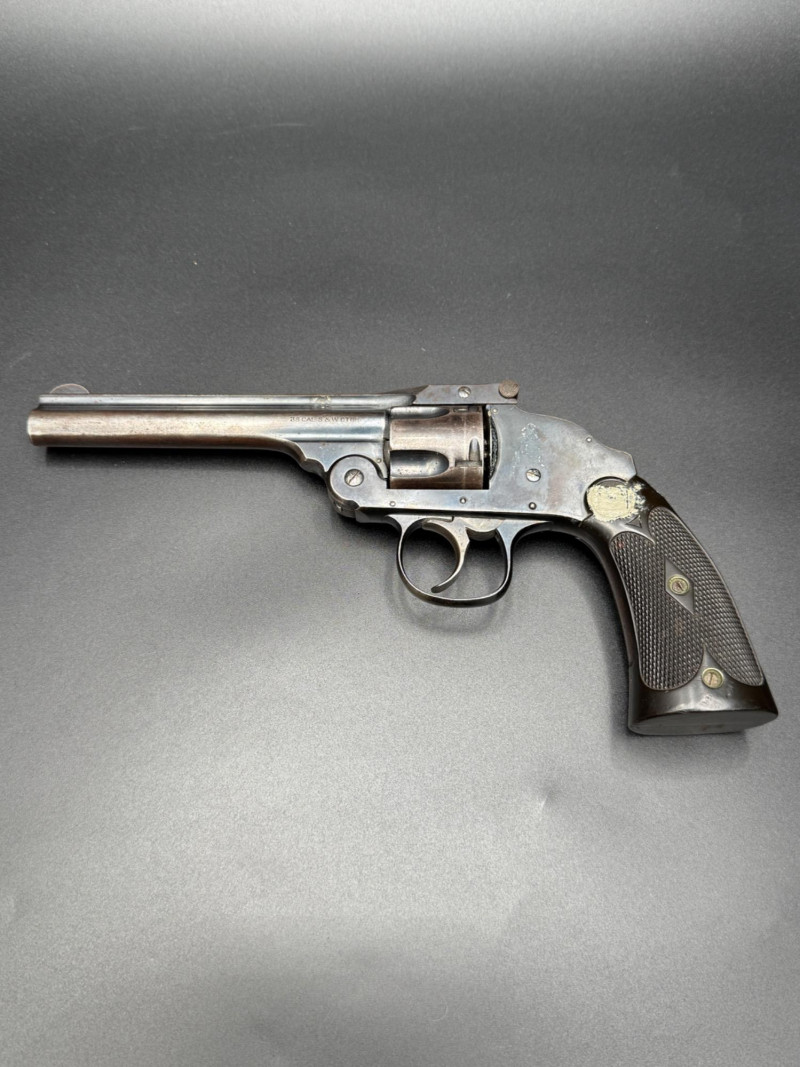 Vintage .38 Caliber Top-Break Revolver – 5" Barrel, Vintage Collectible Description: This model is believed to date from the late 19th to early 20th century with the traditional latch mechanism for easy loading and unloading. It displays typical wear and finish loss consistent with age but retains great mechanical character and patina for display. Details: Maker: Harrington and Richardson Caliber: .38 Barrel length: ~5" Overall length: ~10" Top-break design with 5-shot cylinder Condition: Used, shows finish wear, aging, and handling marks (see photos) Sold as a collectible firearm Important Legal/Transfer Information (PLEASE READ): Buyer must be 21+ and legally eligible to purchase a firearm in the state of Washington. A 2-week waiting/cool-down period will apply per state regulations. Transfer must be completed through a certified firearms dealer. Buyer will need to pass a background check at a licensed FFL in Kent, WA. Buyer is responsible for all transfer fees charged by the FFL. No direct shipping to individuals. This firearm will only be released to you after successful background check completion and required waiting period. Notes: