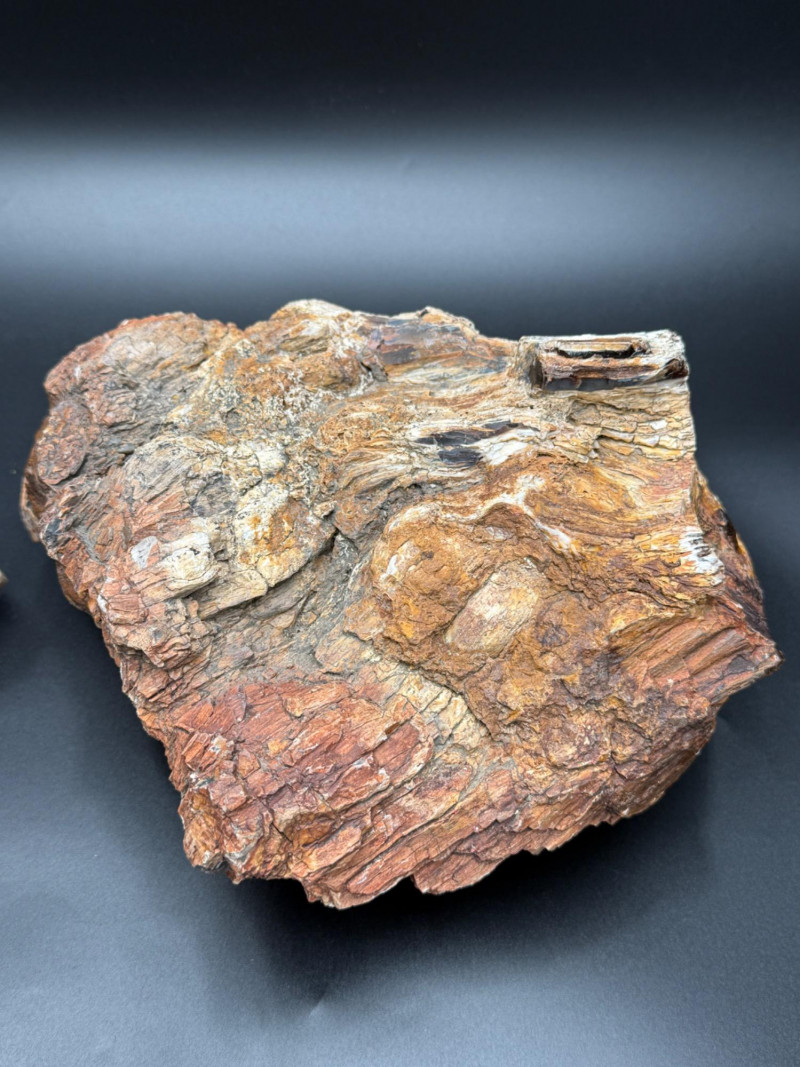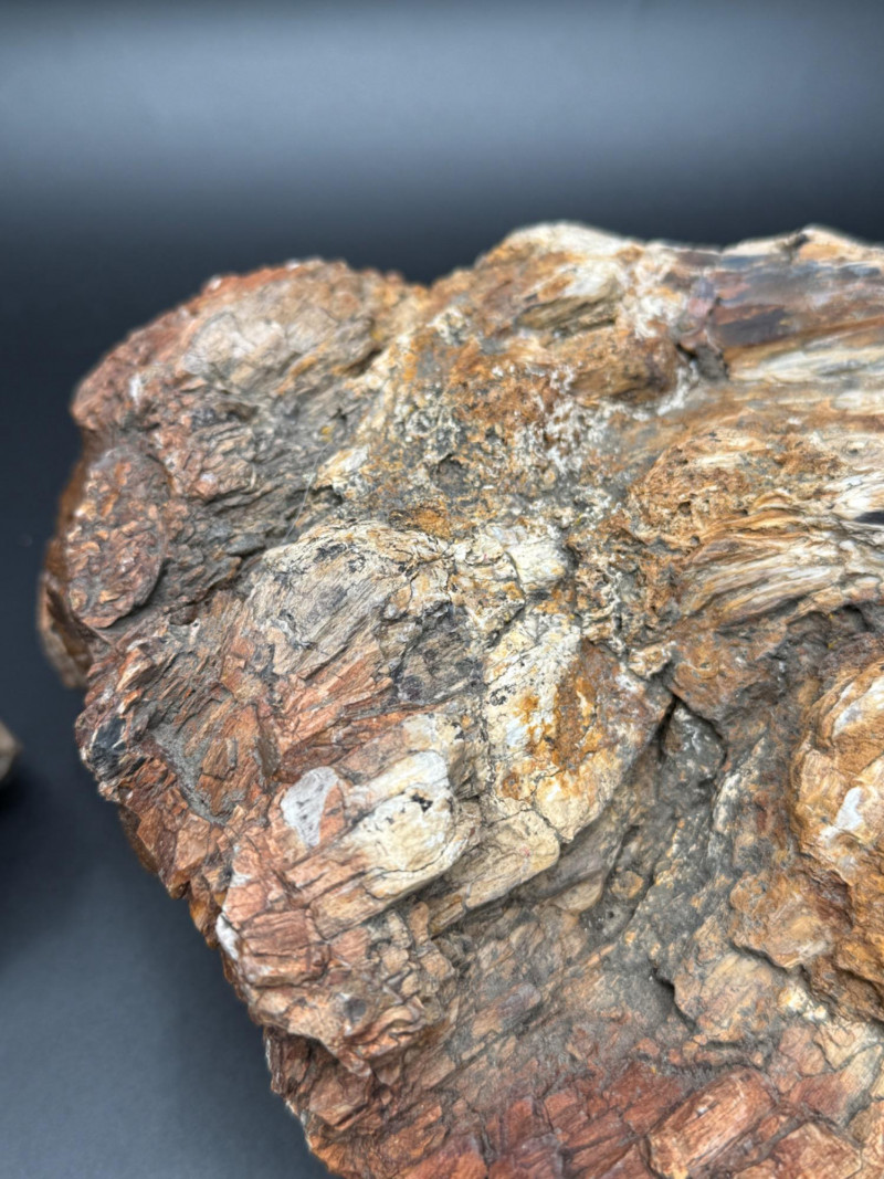 Two Large Fossil-Like Stone Specimens – Believed to Be Petrified Wood Description: While they appear to be petrified wood, I cannot guarantee their precise geological identification, so please examine the photos carefully and bid accordingly. Approximate Dimensions: Smaller piece: ~4" x 4.5" x 3" Larger piece: ~10" x 8" x 5.5" Features: Rich natural coloration: browns, reds, yellows, grays Layered, bark-like or woody textures Solid, heavy feel typical of mineralized specimens Condition: