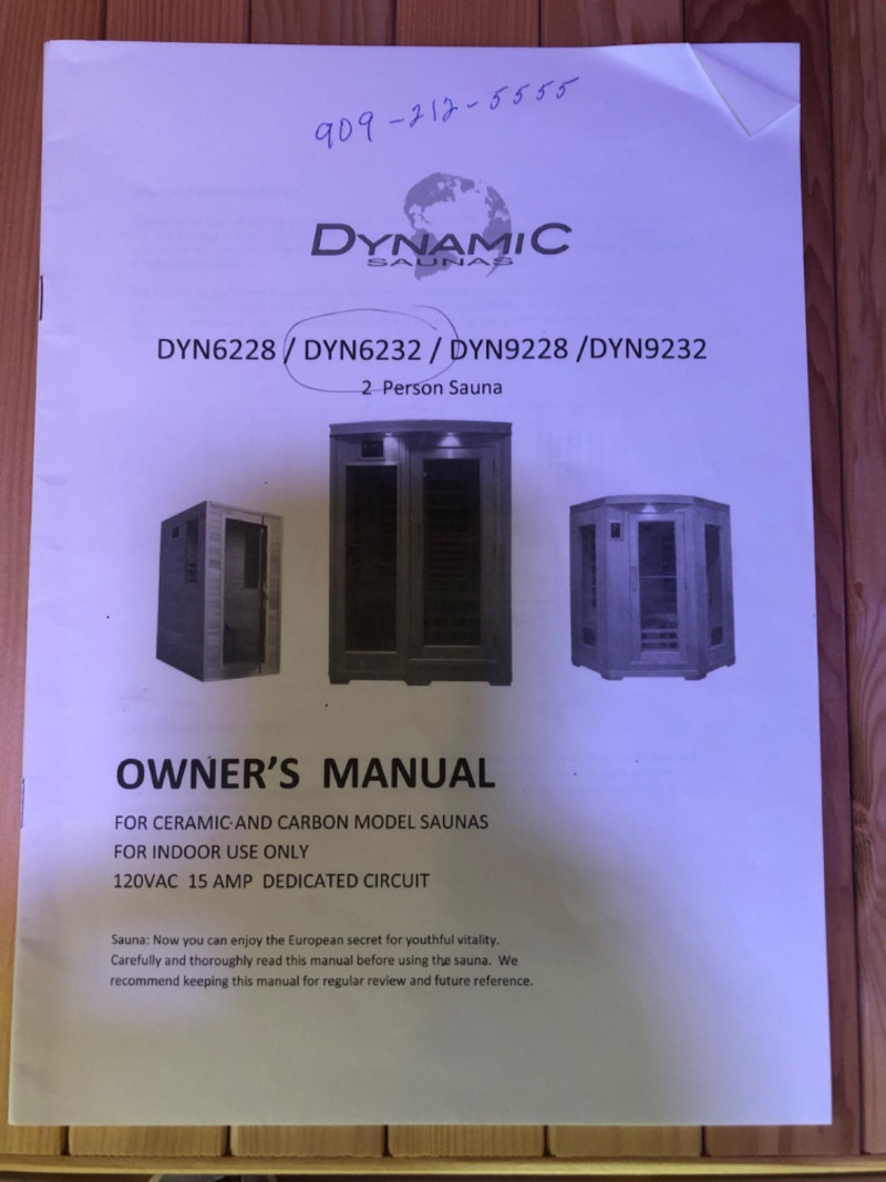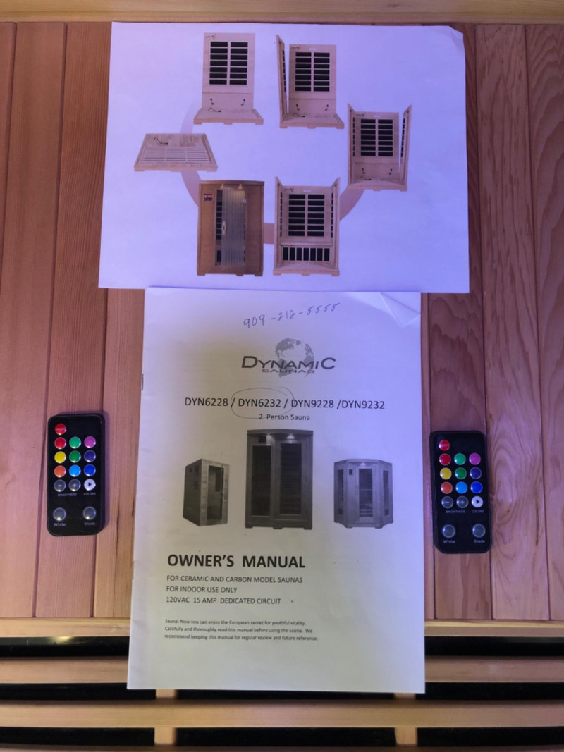 Dynamic 2 Person In Home Sauna - Model DYN6232 Only used a few times. Friendly Reminder: This auction will start closing at 6:30pm on Tuesday, August 12th