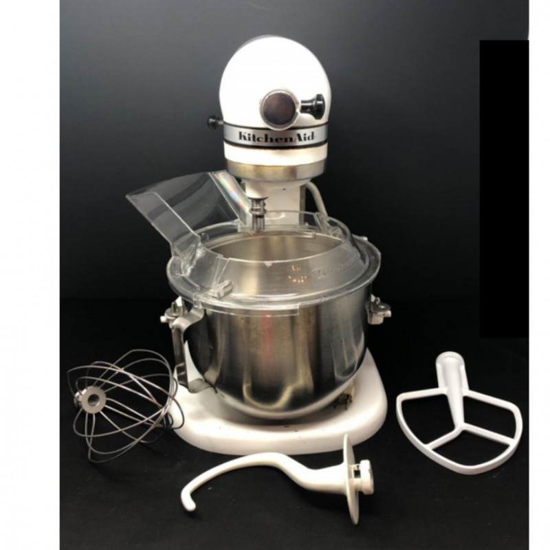 Vintage KitchenAid K5-A stand mixer in classic white enamel finish, manufactured by Hobart. This heavy-duty tilt-head mixer includes a stainless steel bowl, wire whisk, dough hook, flat beater, and clear pouring shield. A reliable workhorse with timeless appeal, ideal for baking enthusiasts and collectors alike. Details: Brand: KitchenAid (by Hobart) Model: K5-A Bowl Capacity: Approx. 4.5 qt Attachments: Whisk, dough hook, flat beater, pouring shield Era: Likely late 1970s–early 1980s This model is prized for its solid construction and compatibility with a wide range of KitchenAid accessories. A true kitchen classic with enduring value. Working Friendly Reminder: This auction will start closing at 6:30pm on Tuesday, August 12th