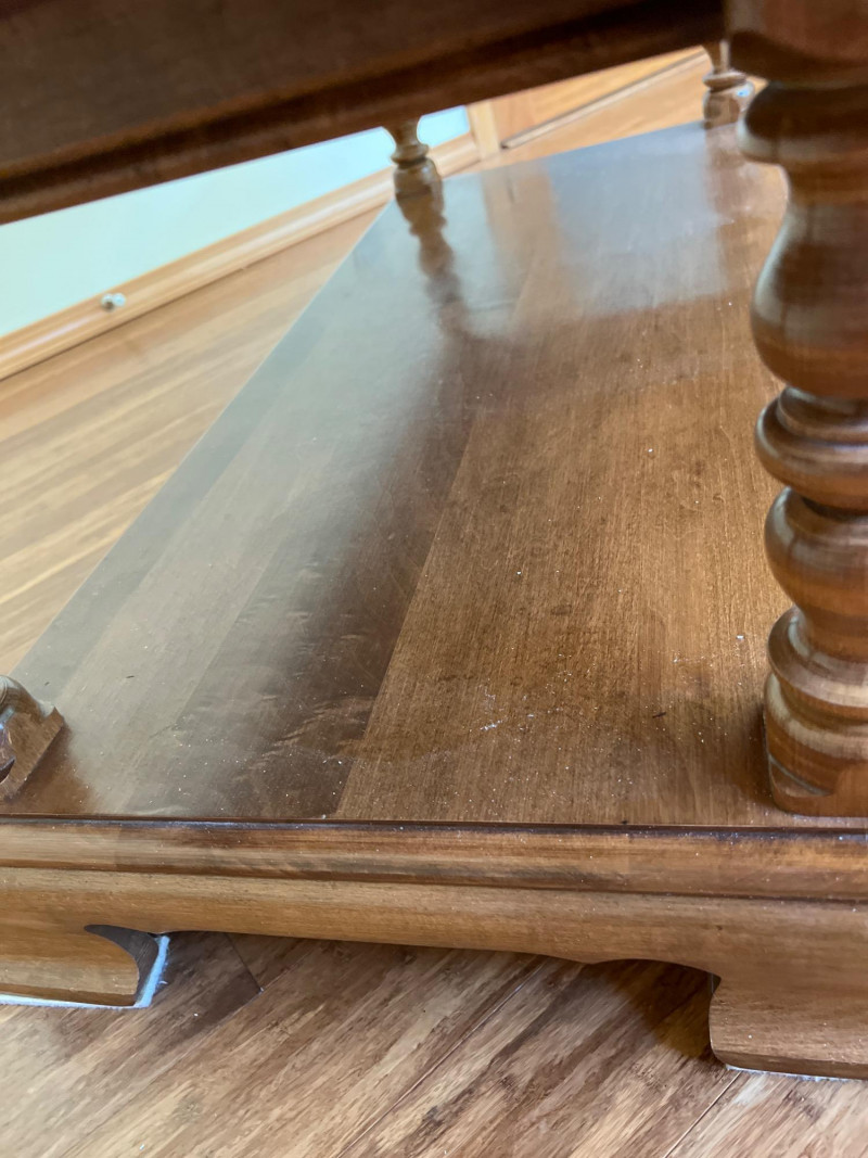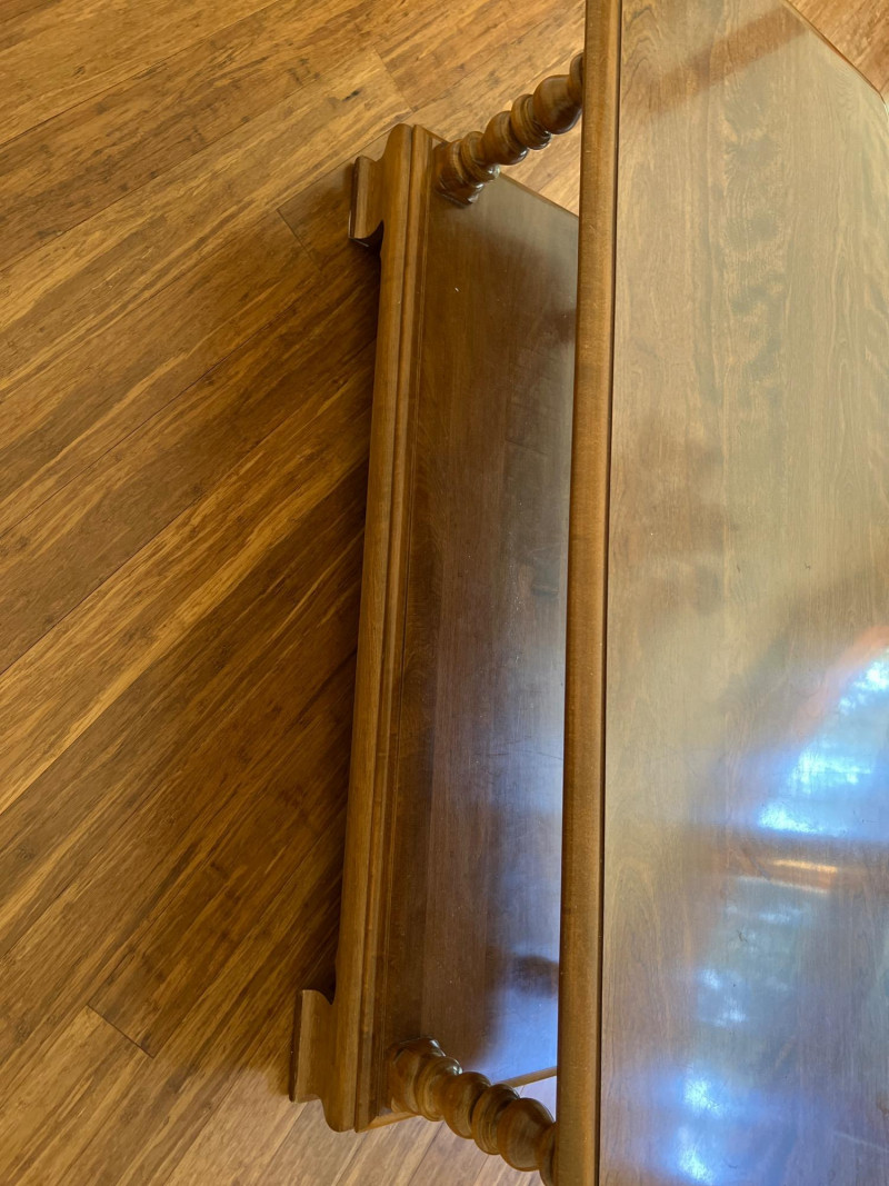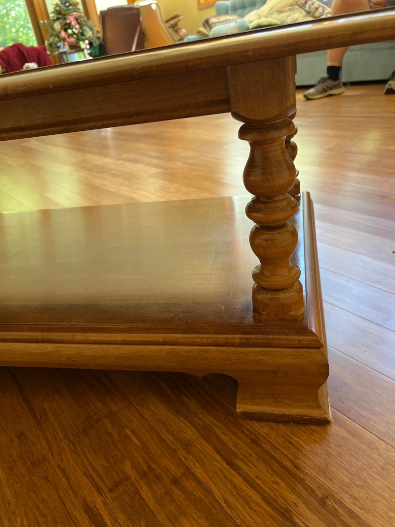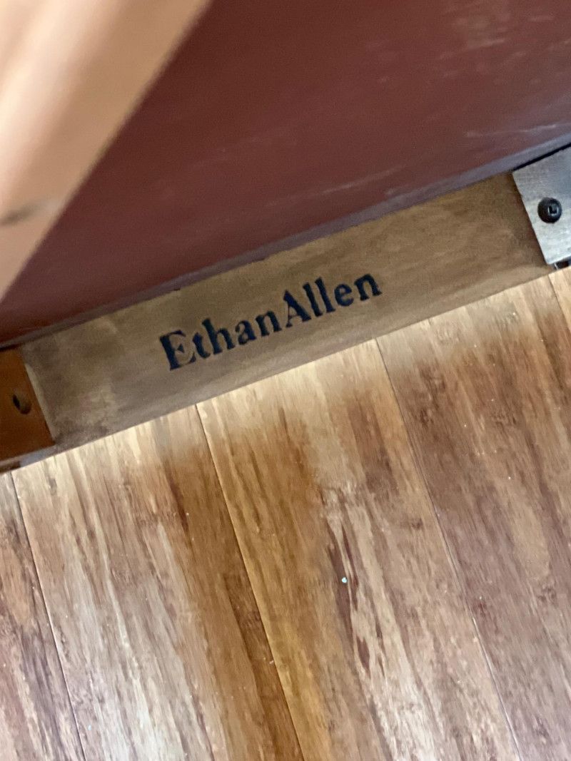 Timeless craftsmanship meets early American charm in this Ethan Allen Colonial-style coffee table, crafted from solid maple wood with a warm, nutmeg finish. The rectangular top is supported by four classic turned legs and a practical lower shelf—perfect for books, baskets, or decorative accents. Details: Maker: Ethan Allen Style: Colonial / Early American Material: Solid maple wood Finish: Nutmeg stain Features: Lower shelf, turned legs, sturdy construction A versatile piece that is ideal for living rooms, dens, or cozy reading nooks, or for a SMART TV stand. Bidding on this lot is an agreement that: (1.) You will have 2 capable, able-bodied persons to lift and load at a minimum. (2.) You
