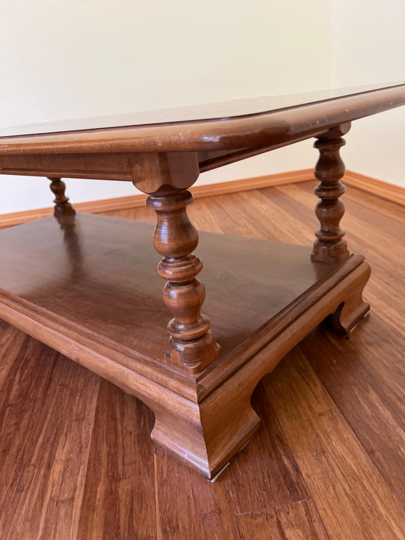 Lot # 22 - Ethan Allen Colonial Maple Coffee Table – Turned Legs & Lower Shelf
