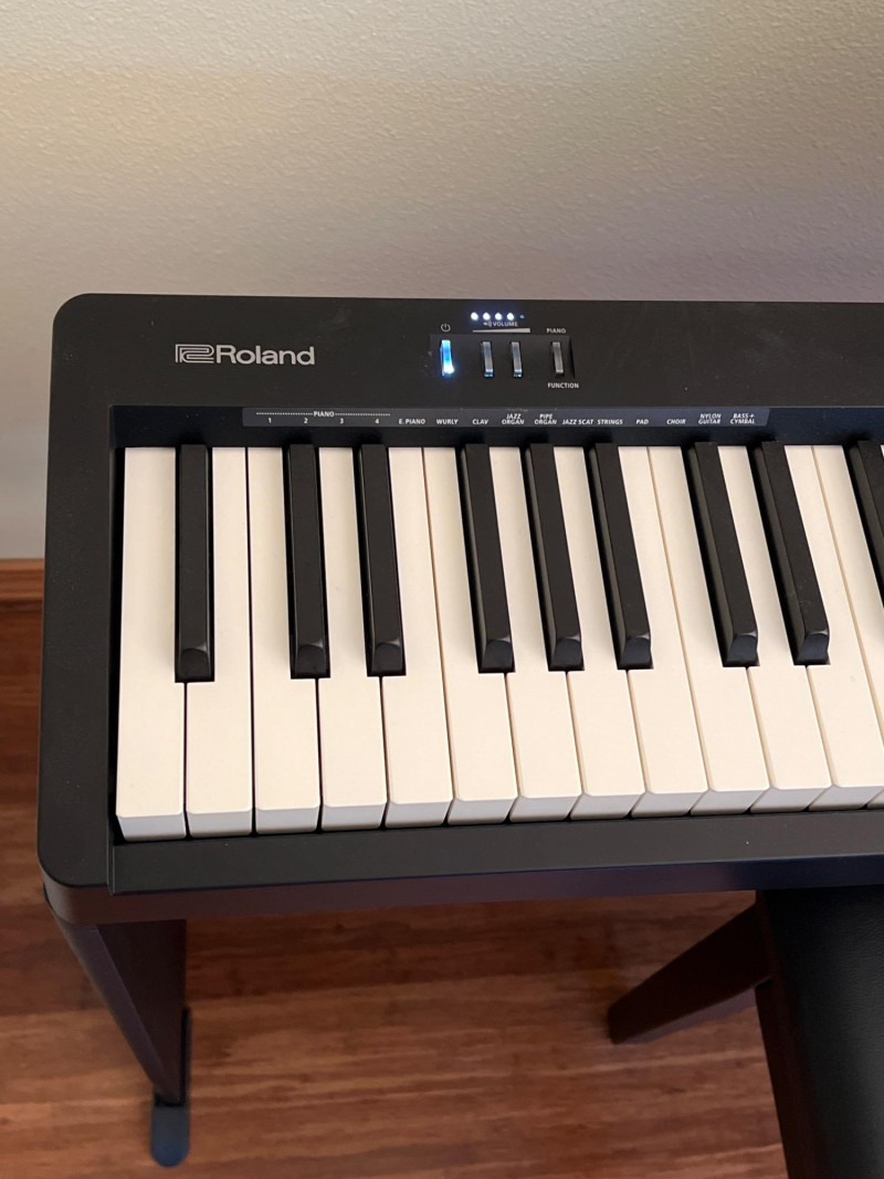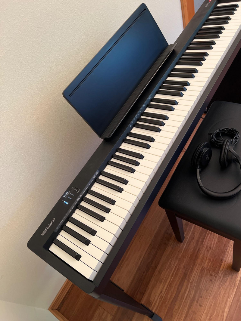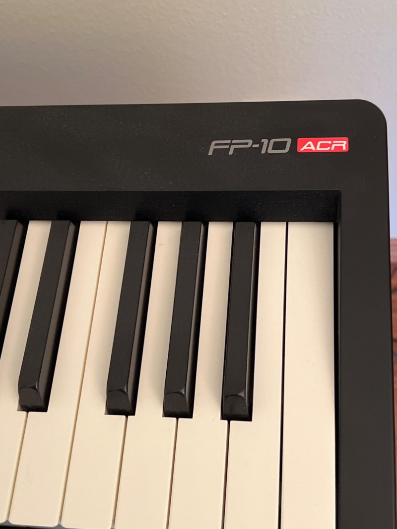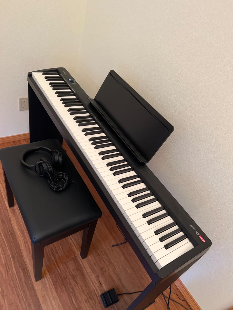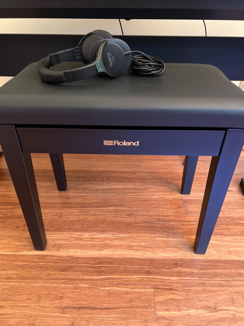 Experience the dynamic feel of a true acoustic piano in a sleek, space-saving digital package. The FP-10 ACR features Roland’s acclaimed SuperNATURAL sound engine and a fully weighted 88-key PHA-4 Standard keyboard, offering expressive tone and authentic touch ideal for beginners and seasoned players alike. Included is the matching music stand, padded bench, sustain pedal, stereo headphones Highlights: Built-in 2x6W stereo speakers, Bluetooth & USB MIDI connectivity, Twin Piano mode for duets or lessons, Layered voices, ambience & brilliance effects, Headphone jack for silent practice. Lightweight. Bench size: 20" H x 22" L x 13" W Working Friendly Reminder: This auction will start closing at 6:30pm on Tuesday, August 12th