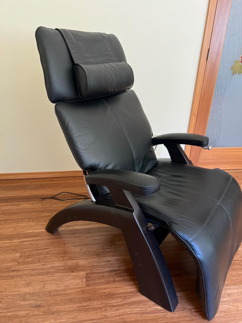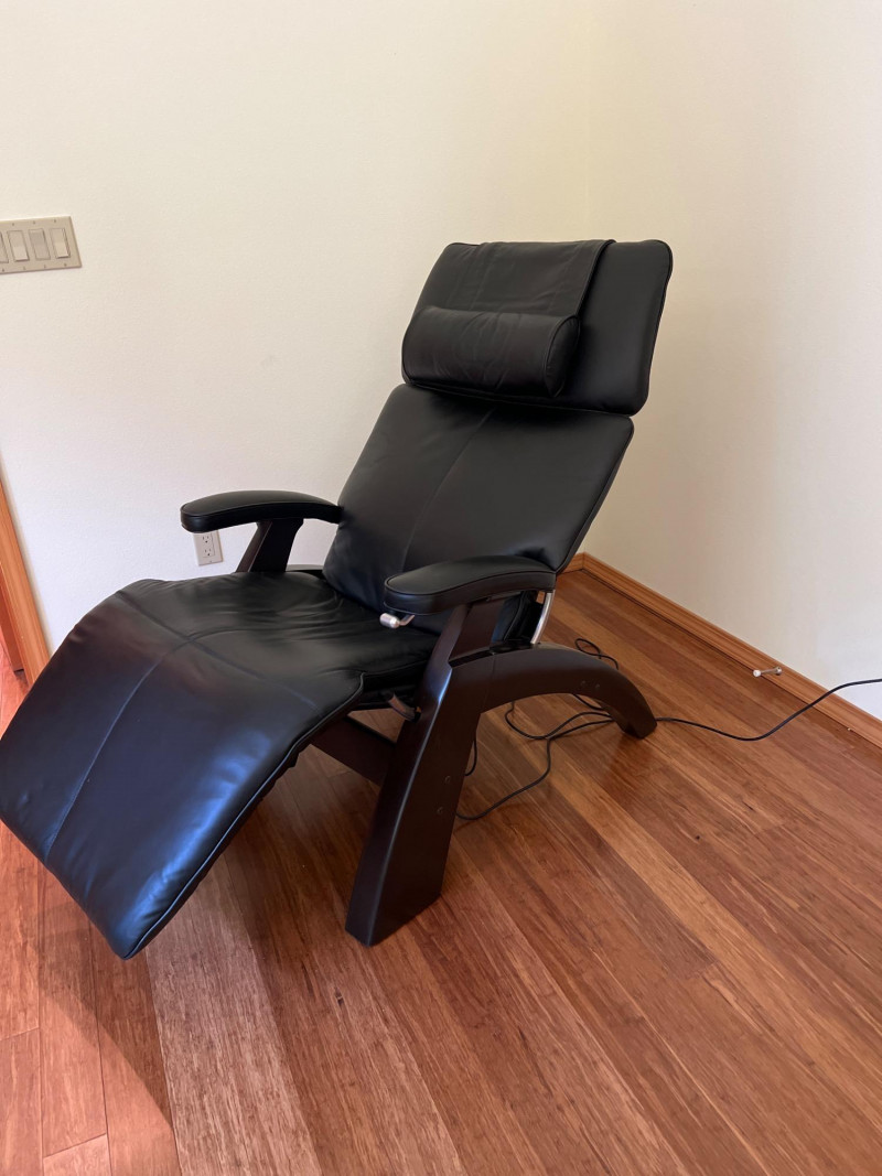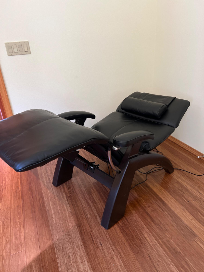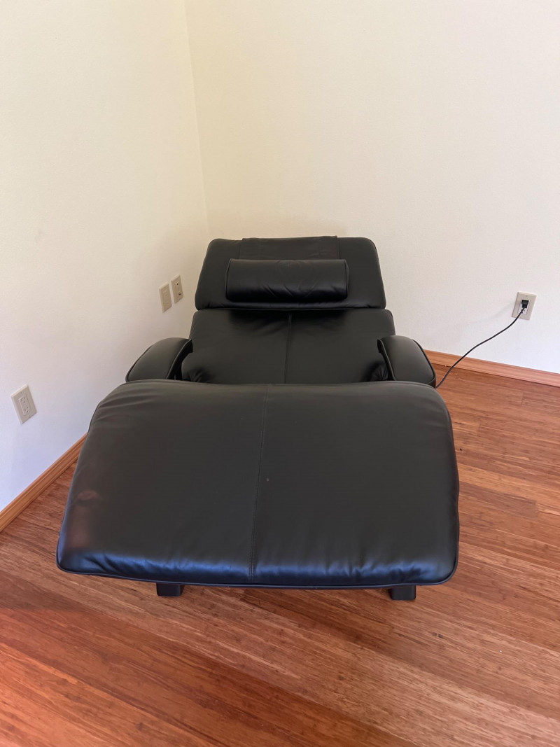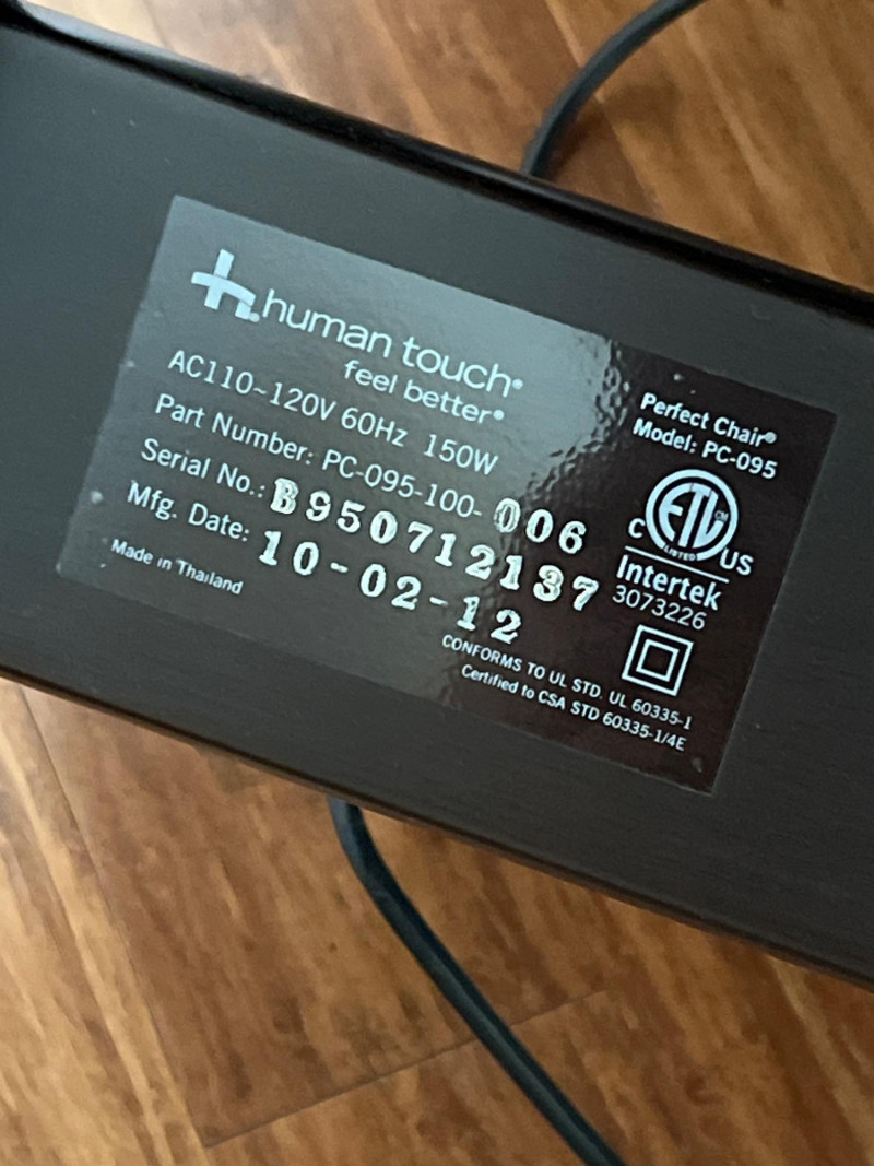 Experience full-body relaxation with this certified Human Touch recliner featuring zero gravity positioning, ergonomic support, and sleek black faux leather upholstery. Designed to promote spinal alignment and circulation, this 2012 model offers comfort and style in equal measure. Overview: Brand: Human Touch Model Year: 2012 Certification: Intertek-listed, indicating compliance with safety and performance standards. Design: Zero Gravity positioning recliner with ergonomic support, high backrest, and integrated footrest. Inspired by NASA's neutral posture concept to reduce pressure on the spine and enhance relaxation. Functionality: Promotes spinal decompression and circulation by elevating legs above heart level; thus, relieving stress, improvement of circulation and back support. Material: Faux or bonded leather with padded headrest and armrests. Retail of similar models: between $2,000–$5,000 depending on features. Working Bidding on this lot is an agreement that: (1.) You will have 2 capable, able-bodied persons to lift and load at a minimum. (2.) You