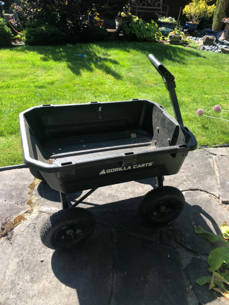 Durable and practical, this Gorilla Carts garden wagon (Model GCG-7) is built for demanding outdoor tasks. Featuring a poly dump bed, four large pneumatic wheels, and an ergonomic pull handle, it’s ideal for hauling soil, tools, firewood, or landscaping supplies. Highlights: Easy-dump design for quick unloading 1,200 lb capacity for heavy-duty hauling Heavy-duty plastic bed with reinforced frame Comfortable hand-pull handle for maneuverability Brand: Gorilla Carts – known for quality and reliability Friendly Reminder: This auction will start closing at 6:30pm on Tuesday, August 12th