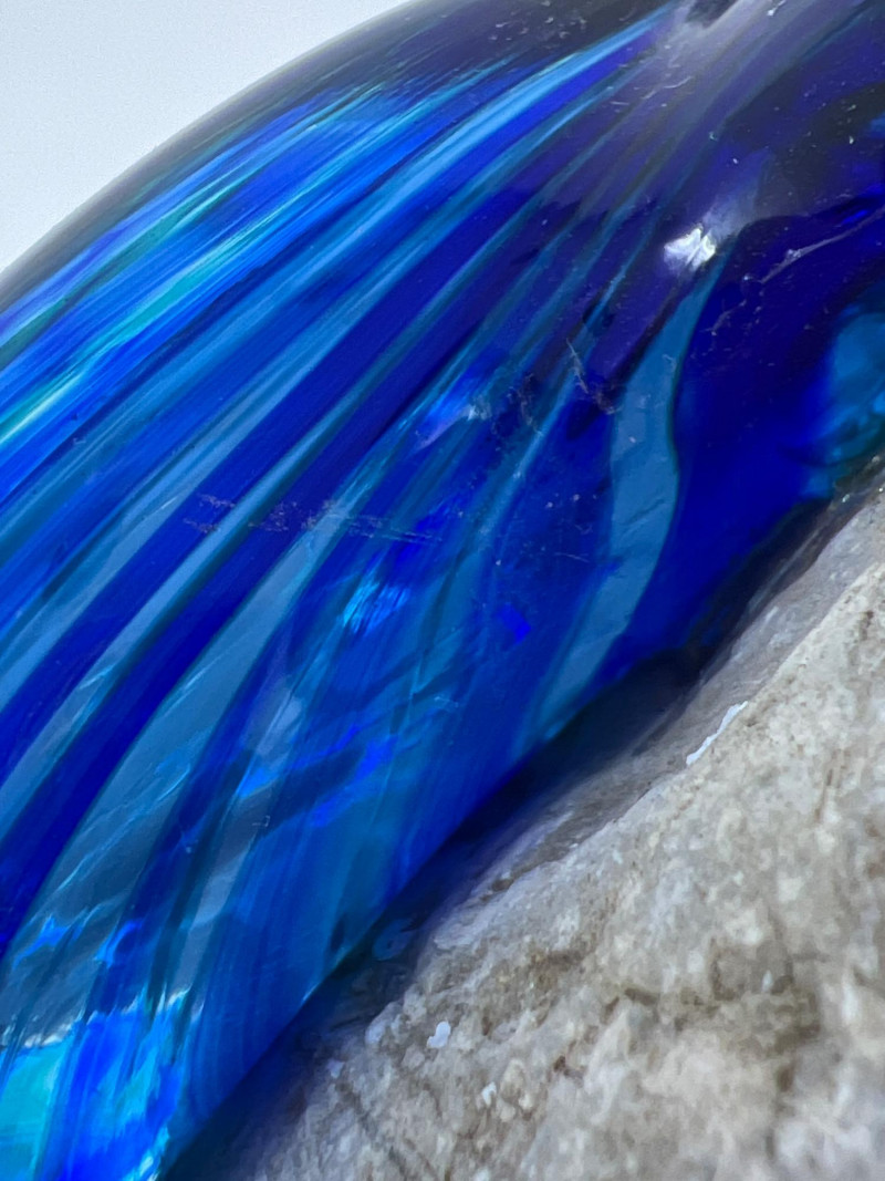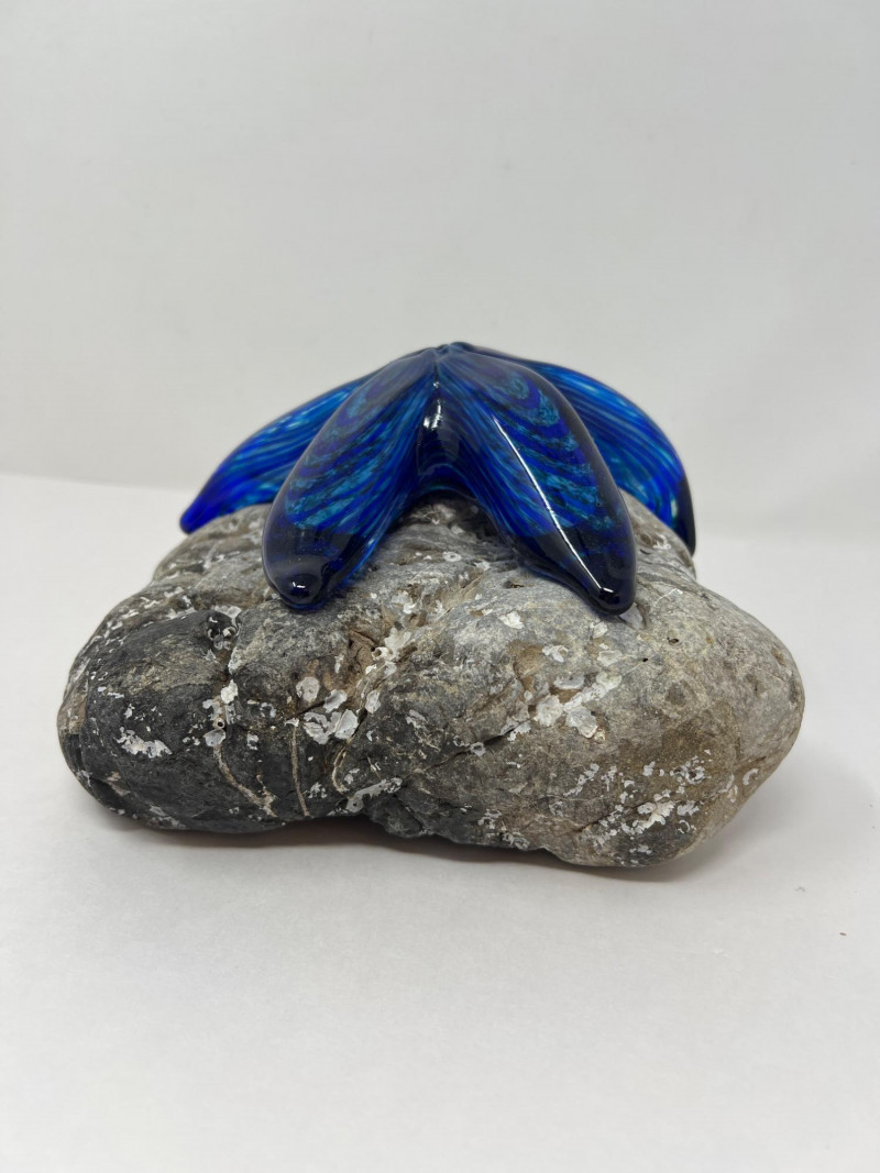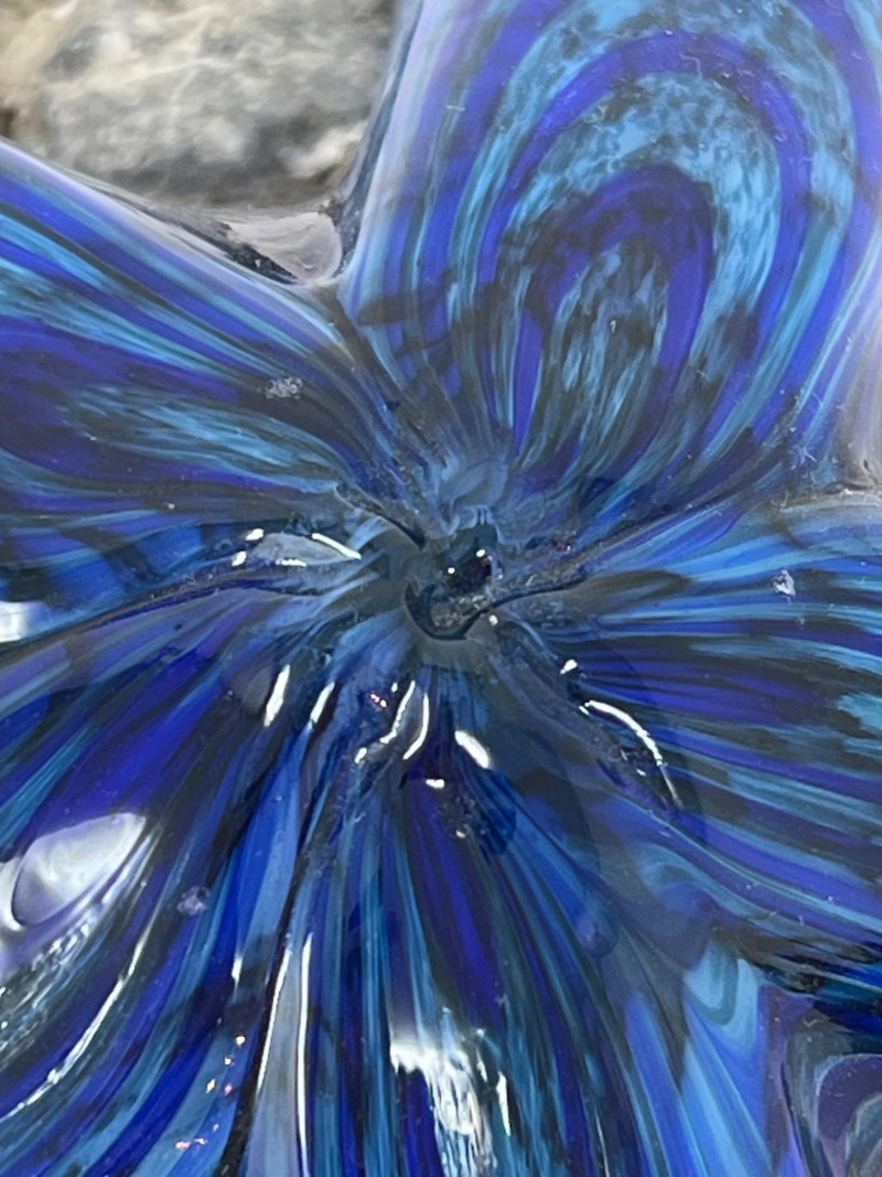 A striking fusion of marine-inspired beauty and natural texture. Appears this is a signed Ellinger glass starfish sculpture features flowing, hand-formed lines in brilliant shades of blue and green. Resting atop a genuine gray stone base with organic speckling, the starfish evokes coastal elegance with a touch of whimsy. Details: Artist/Maker: Appears to be Ellinger Glass Materials: Handblown glass & authentic rock base Color: Iridescent blue/green glass with textured finish Friendly Reminder: This auction will start closing at 6:30pm on Tuesday, August 12th