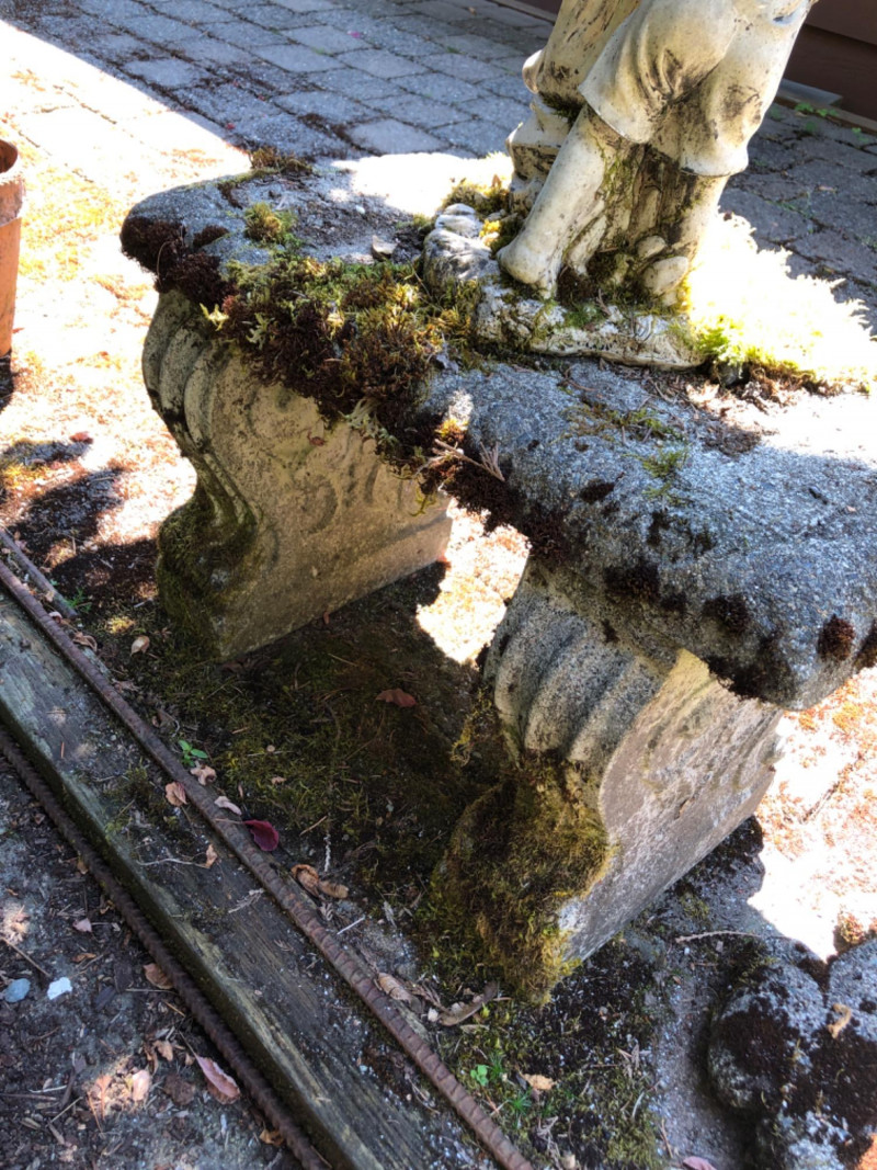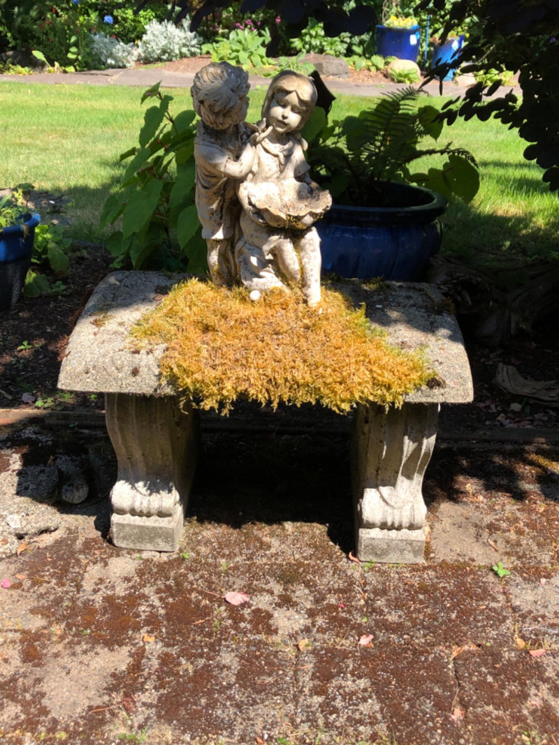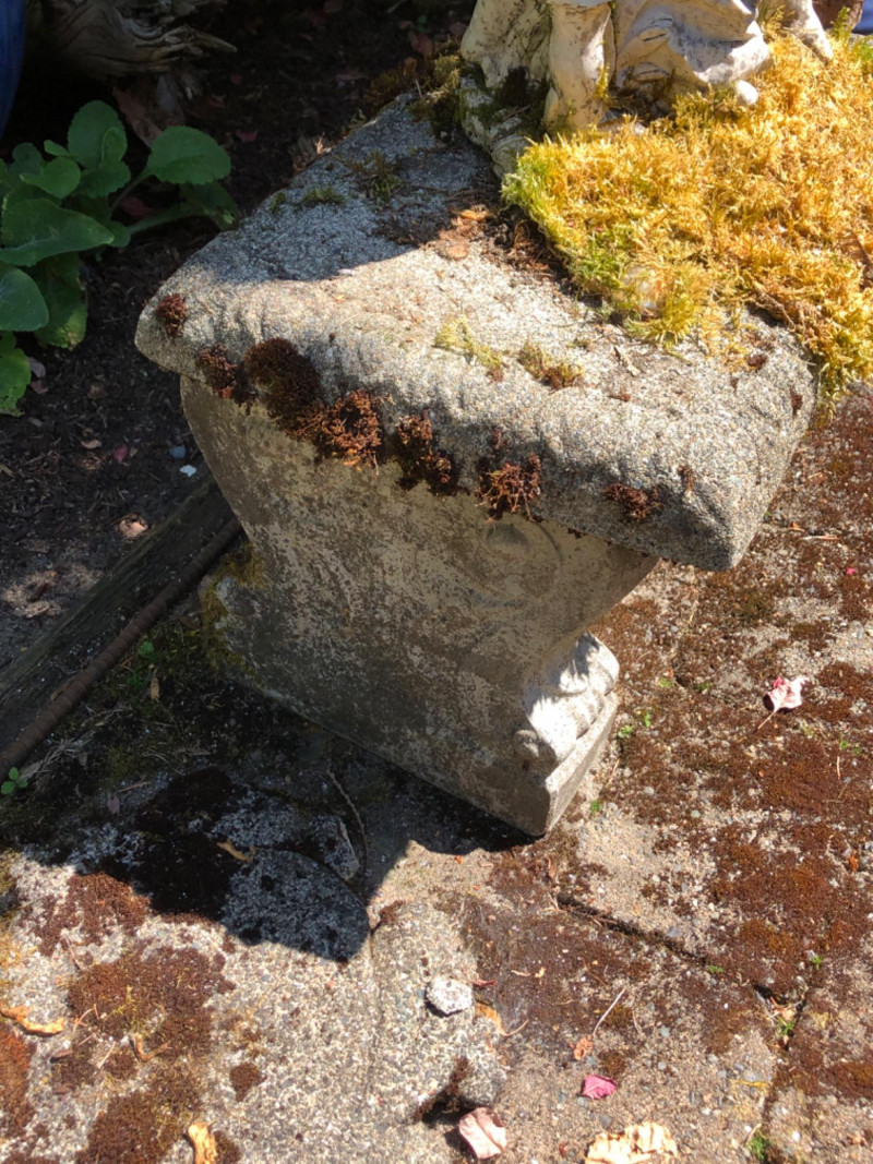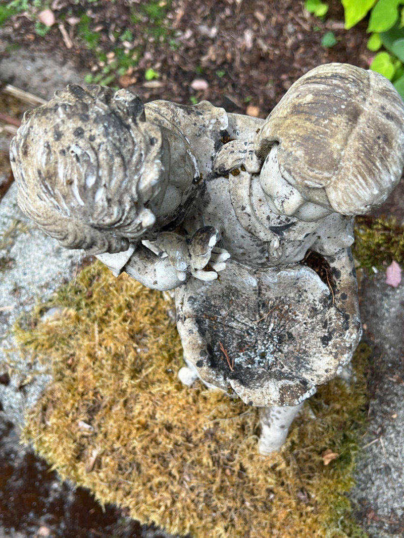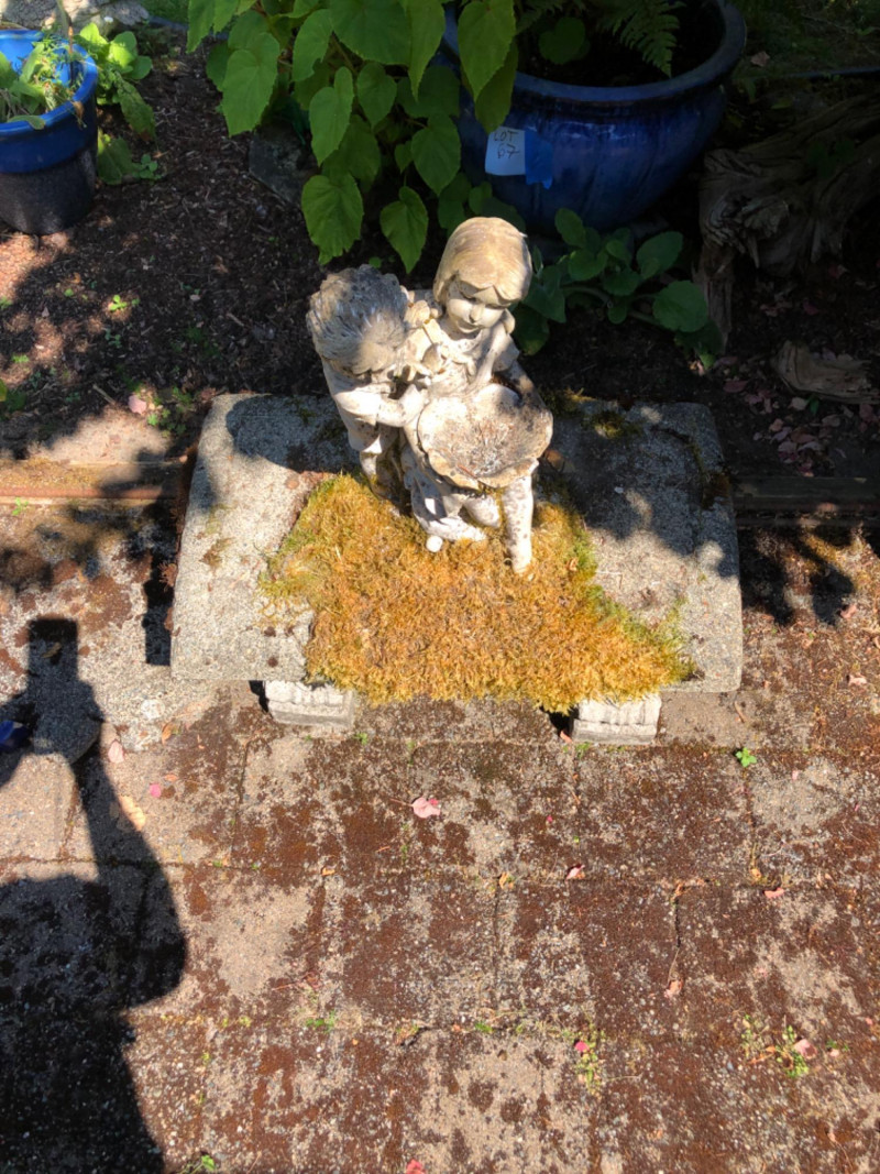 This bench represents timeless charm with this vintage concrete bench that is paired with a weathered statue of a boy and girl holding a bowl to feed the birds (16 inches height by 7 inches wide by 8 inches deep). The statue features soft detailing and a gentle patina from outdoor exposure, adding character and nostalgic appeal. The bench itself is moss-kissed and sturdy, making it perfect for both decorative use and quiet moments of reflection in the garden. Ideal for cottage gardens, landscaped paths, or shaded corners. Friendly Reminder: This auction will start closing at 6:30pm on Tuesday, August 12th