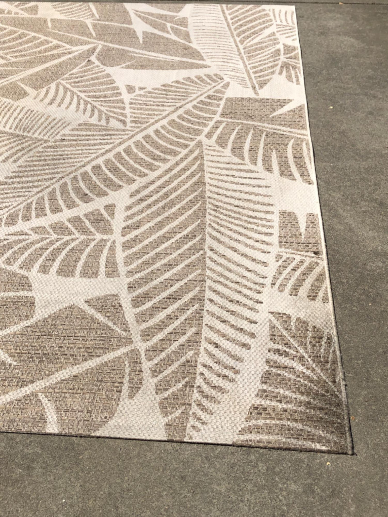 These three large area rugs are machine-woven in Belgium from polypropylene, a synthetic fiber known for its durability, stain resistance, and colorfast properties. Each rug features a distinct design—two with overlapping leaf motifs in neutral tones, and one with ornate scrollwork in gray on beige. The woven construction offers a soft texture and a flat profile, making them ideal for high-traffic indoor or outdoor spaces. Perfect for patios, sunrooms, or transitional interiors, these rugs combine European craftsmanship with low-maintenance practicality. Their generous size (6'6" × 9'6") makes them suitable for anchoring furniture or defining open spaces. Friendly Reminder: This auction will start closing at 6:30pm on Tuesday, August 12th