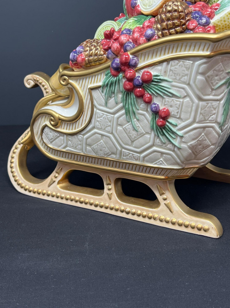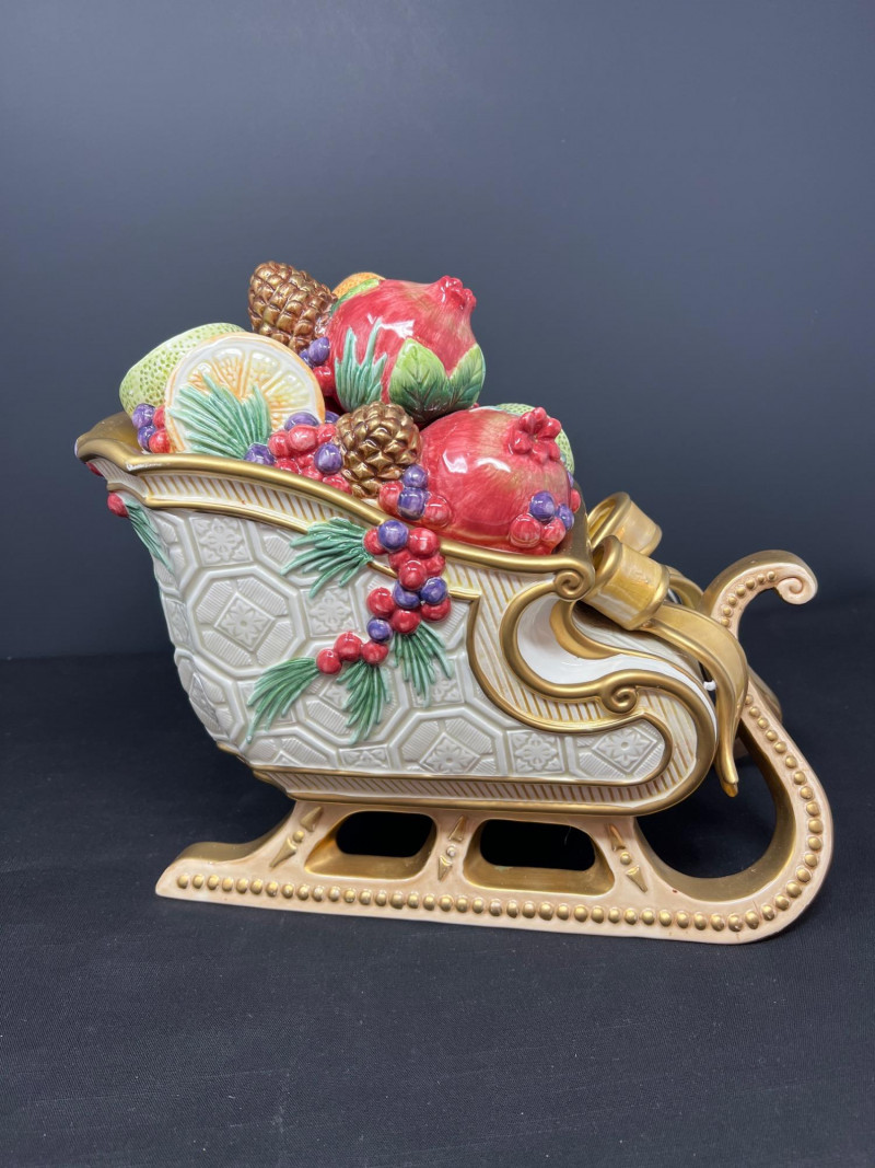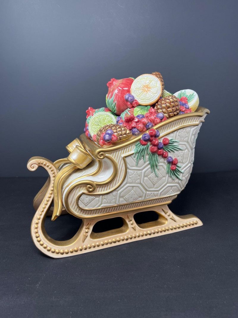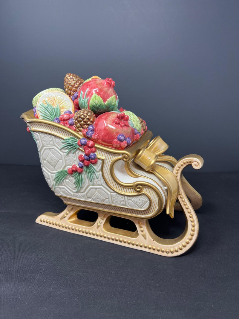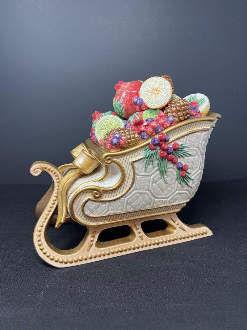 Lot # 59 - Fitz & Floyd “Winter Spice” Sleigh Cookie Jar – Festive Ceramic Decor
