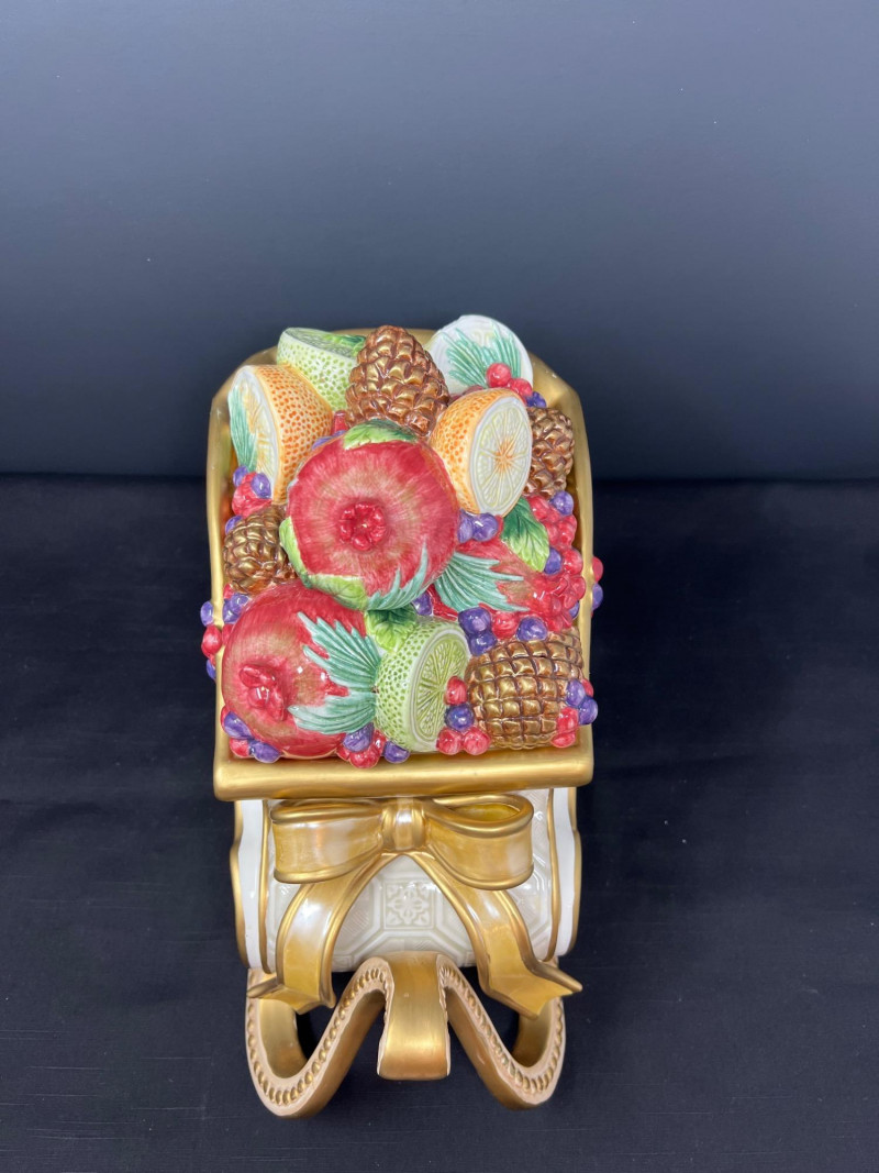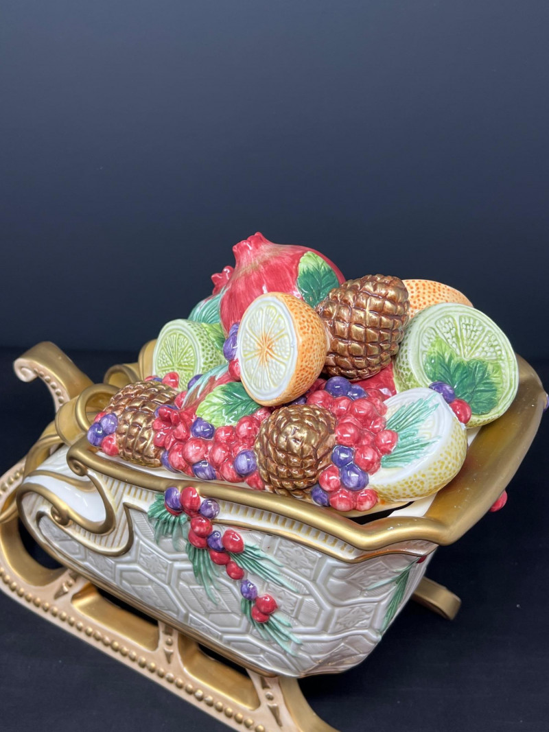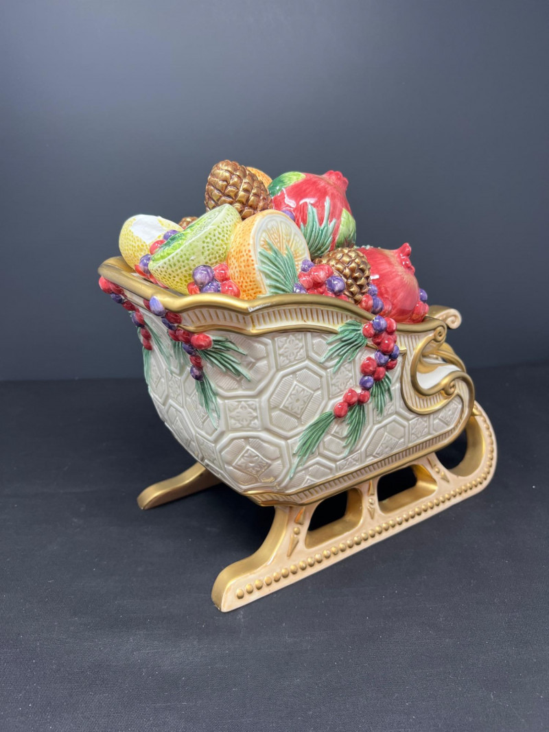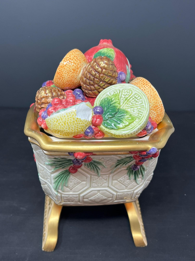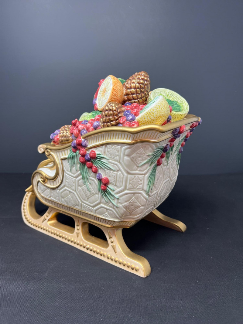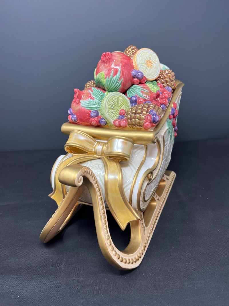 Lot # 59 - Fitz & Floyd “Winter Spice” Sleigh Cookie Jar – Festive Ceramic Decor
