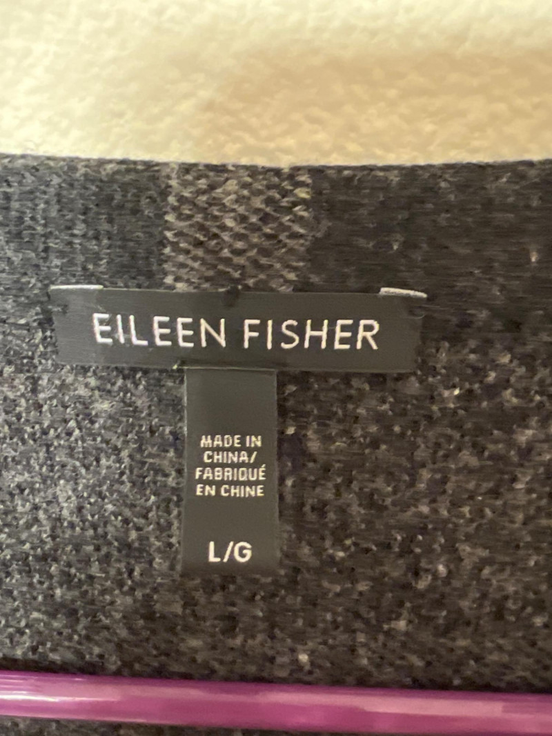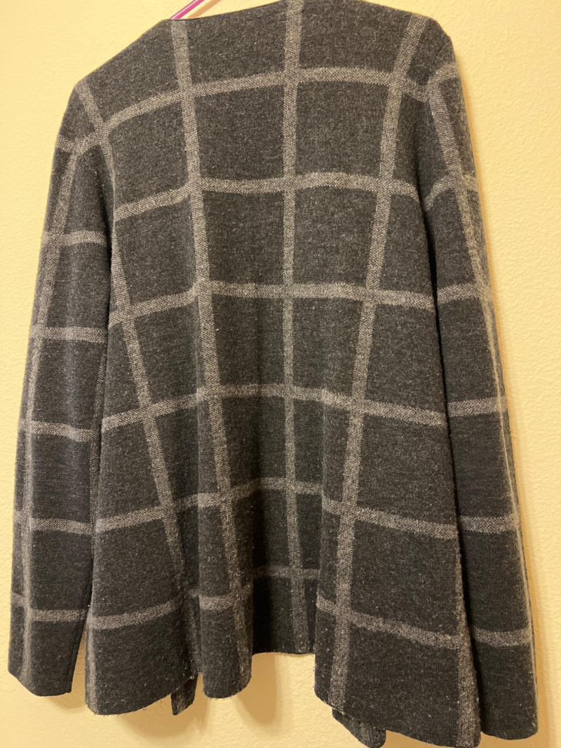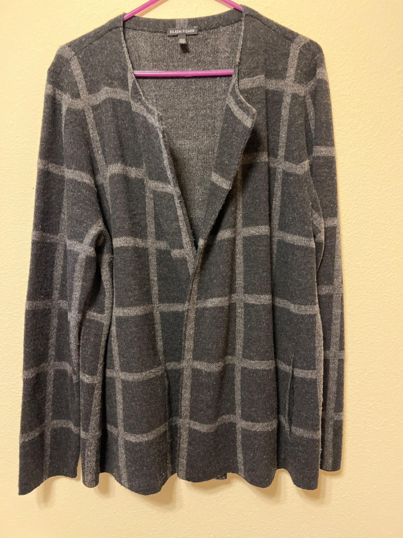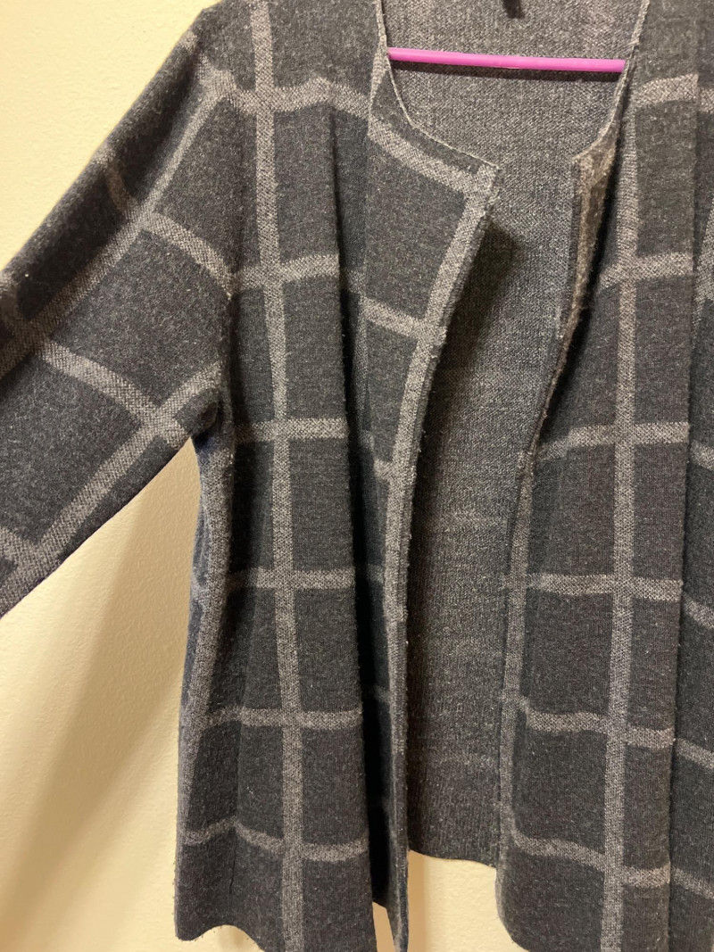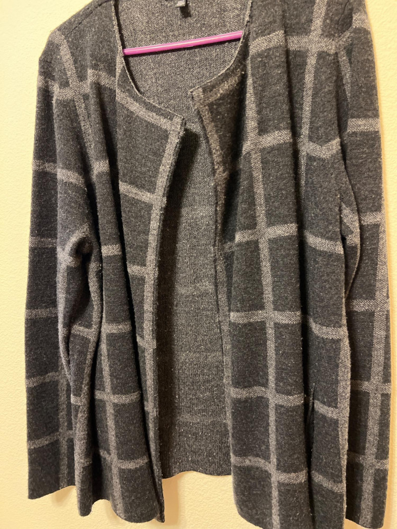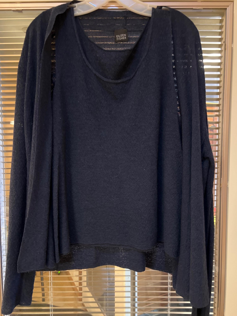 Lot # 68 - Eileen Fisher Checked Merino Cardigan & Navy Wool Tank/Jacket Set (L)
