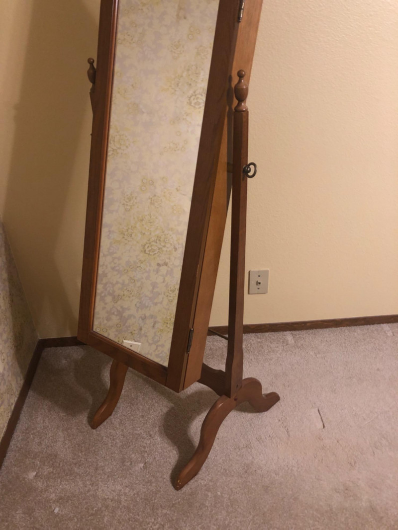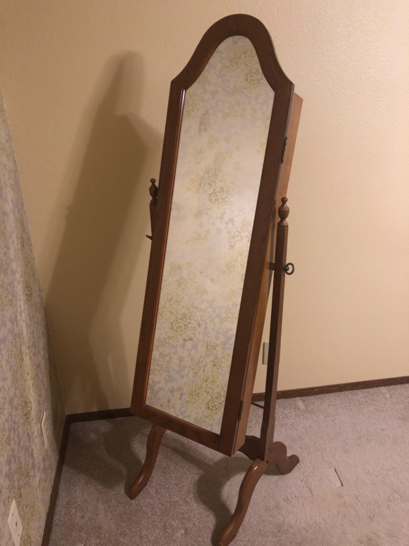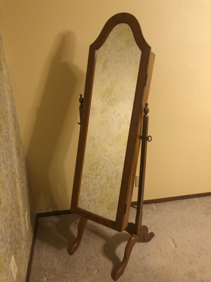 Lot # 70 - Full-Length Swivel Mirror with Built-In Jewelry Storage Cabinet